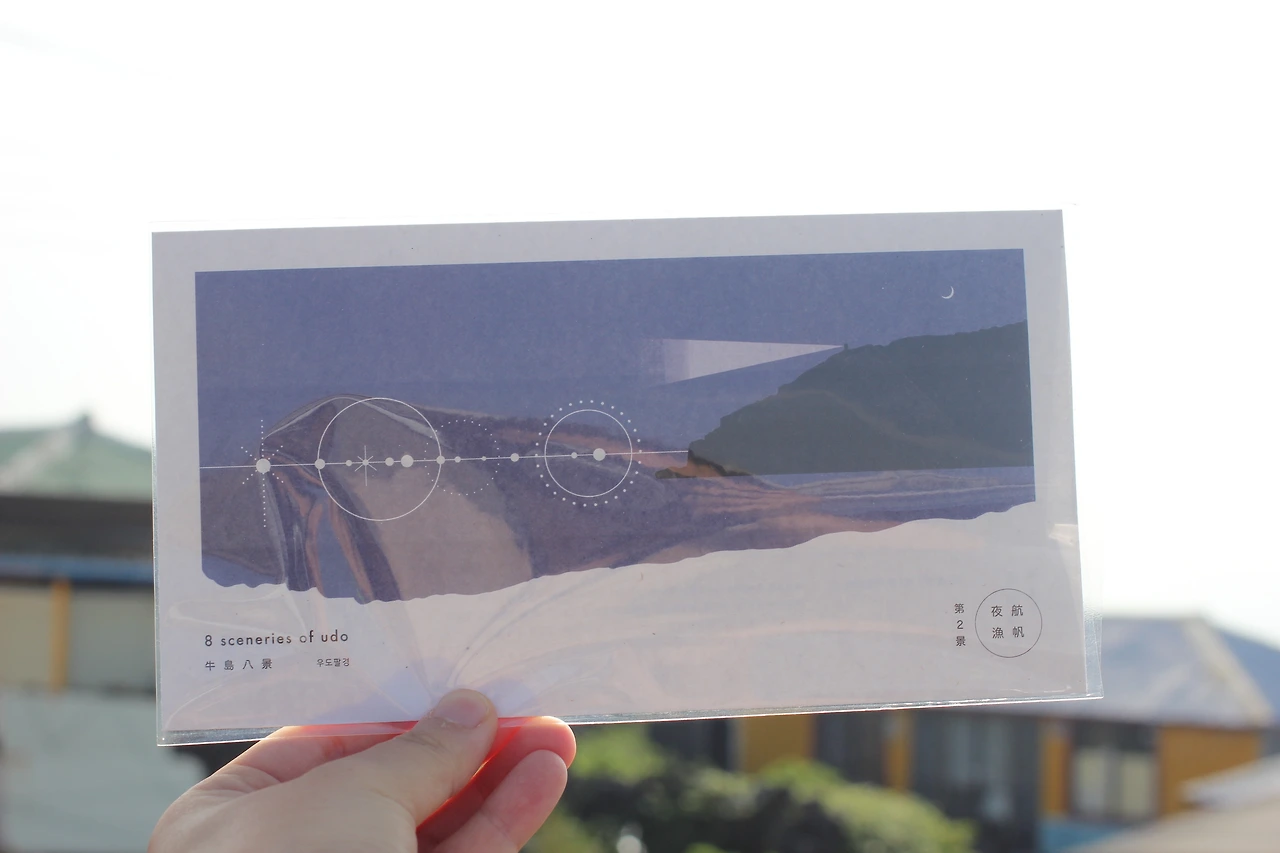밤수지맨드라미 서점은 참 예뻤다. 사고 싶은 책도 많았고 다양한 소품도 많았다. 안쪽에는 앉아서 음료를 마실 수 있는 공간이 마련되어 있었다. 하지만 이번 여행의 예산을 빡빡하게 10만 원으로 잡았기 때문에 섣부르게 뭔가를 살 수가 없었다. 그래서 고심한 끝에 고른 우도 8경 엽서. 이 엽서를 고른 이유는 숙소에 체크인하기 전, 우도를 한 바퀴 돌면서 보았던 우두봉이 내 우도에 대한 예전 인상을 모두 깨부수어버릴 만큼 멋있었기 때문이었다. 다른 사람들도 비슷한 마음인지 낮 2시경 우두봉 옆얼굴을 볼 수 있는 검멜레해변 주변에 사람들이 너무 많고 주차장이 꽉 차 있어서 도저히 머무를 수 없었다. 심지어 급경사 구간이라 멈춰 서서 사진을 찍을 여유도 없었다. 아쉬움을 느끼던 찰나에 이 고요하게 보이는 우도 2경 '야항어범' 엽서를 보고 엽서를 사서 나한테 편지를 보내보는 것은 어떨까 하는 생각이 들었다. 다행히 우체국 업무 마감은 6시. 햄버거의 픽업 예상 시간은 4시 15분, 가볍게 편지를 써서 우체국에 들리는 것 정도는 할 수 있는 여유가 있었다. 햄버거를 기다리며 뜨겁게 달궈진 마티즈 안에서 2000원을 주고 구입한 엽서 뒤에 편지를 썼다.