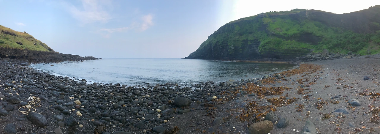 아무도 없는 계단을 따라 너무 적막해서 무섭기까지 한 검멀레 해변으로 내려갔다. 까맣고 동그란 돌들이 귀엽다. 우도의 각 해변들이 이토록 다른 모습이라는 것이 놀랍고 신기하고 매력적으로 느껴졌다.