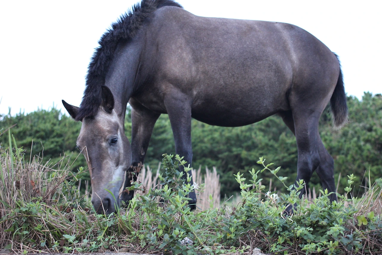 말은 한가로이 이른 아침식사를 즐기고 있다. 여름인 게 믿기지 않을 정도로 시원한 새벽.