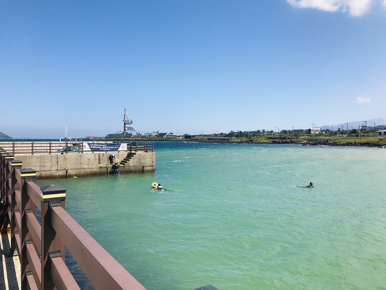 두 번째로 물빛이 너무 아름다웠던 판포포구. 여름에 온다면 청년회에서 구명조끼나 패들보드도 빌려 이 환상적인 물빛을 즐길 수 있다. 스노클링 장비가 있다면 발 밑에서 물고기가 헤엄치는 모습도 볼 수 있다. 수심이 깊어서 위험할 수 있으니 꼭 구명조끼를 입고 놀아야 한다.