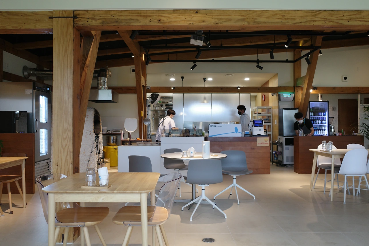 제주 시내에서 차를 몰고 30분 정도 평화로를 달리다 유수암으로 빠지면 동화 속에 나올 것 같은 마을이 나온다. 거기서 센과 치히로의 행방불명에 나올 것 같은 좁은 돌담길을 달려 들어가면 장작을 가득 쌓아놓은 홈즈의 모습이 보인다.