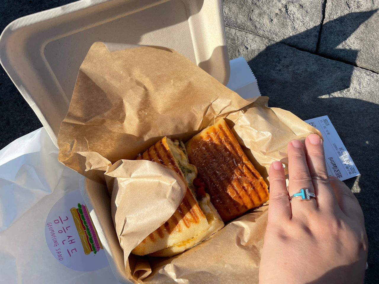 나는 금능 샌드를 먹었는데, 옆에서 혜림님이 컵라면을 드셔서 침을 꼴깍꼴깍 삼켰다. 금능 샌드의 파니니도 맛있었다. 다양한 샌드위치가 많았는데, 다음에 들리면 다른 종류도 먹어보고 싶다.