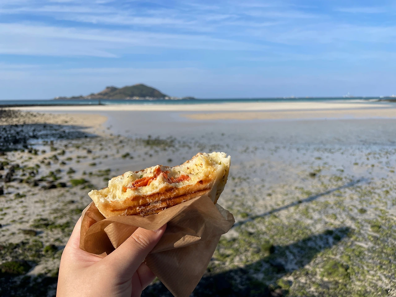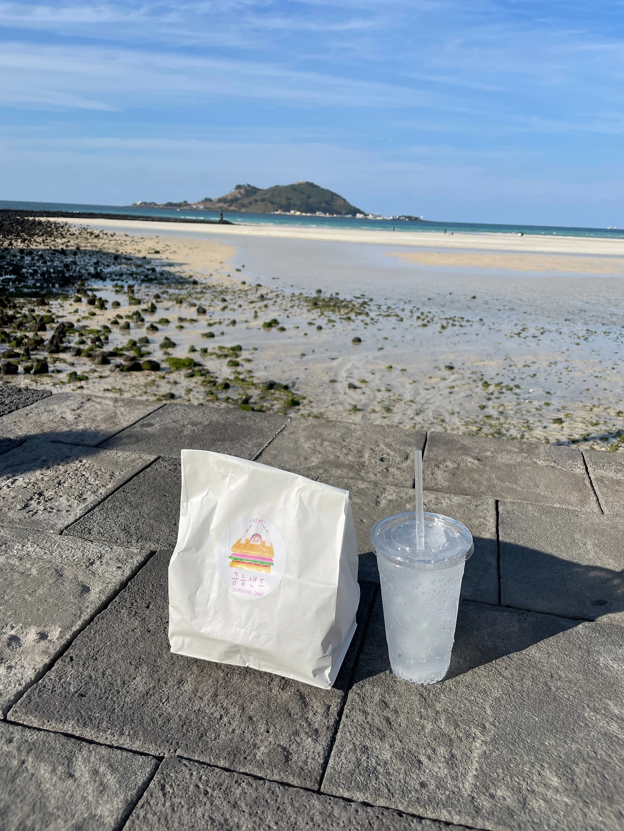 혜림님이 바다를 보고 싶어 하셨기에 금능으로 향했다. 금능 바다의 물은 저 멀리 빠져 있었다. 그래도 에메랄드 빛으로 반짝반짝 빛나고 있어서 우리는 간단한 먹을거리를 사서 바다를 보며 먹기로 했다.