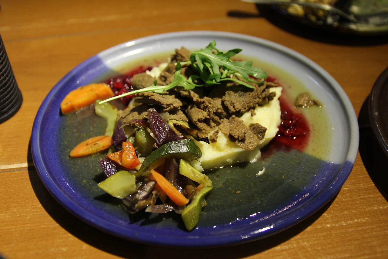 순록 요리는 생각했던 것보다 양호했다. 불고기처럼 보이는 얇은 고기들이 매쉬드 포테이토 위에 듬뿍 뿌려져 있었다. 부드럽고 고소한 매쉬드 포테이토에 베리 쨈을 곁들이고 질기고 독특한 맛이 있는 순록 고기를 함께 씹자 고소한 버터향과 쫄깃한 식감이 입안에서 뒤섞였다. 옛날에는 냄비에 한껏 요리를 해서 다 같이 나눠먹었을 테지, 우리가 쌀밥 위에 반찬을 올려 먹었던 것처럼 감자와 고기로 바이킹들도 그렇게 배를 채웠을 것이다. 물론 지금처럼 풍미가 있거나, 맛있지는 않았어도 시장이 반찬인 전사들에게는 충분하지 않았을까?