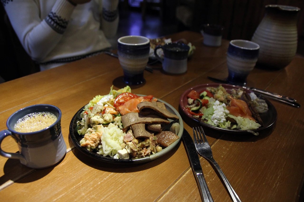 핀란드인인 야니의 힘을 빌어, 우리는 크리스마스 런치 세트를 주문하고 세트 메뉴에 제공되는 샐러드바에 달려갔다. 샐러드 바에는 다양한 애피타이저들과 샐러드, 따뜻한 커피와 차들이 보기 좋게 놓여 있었다.