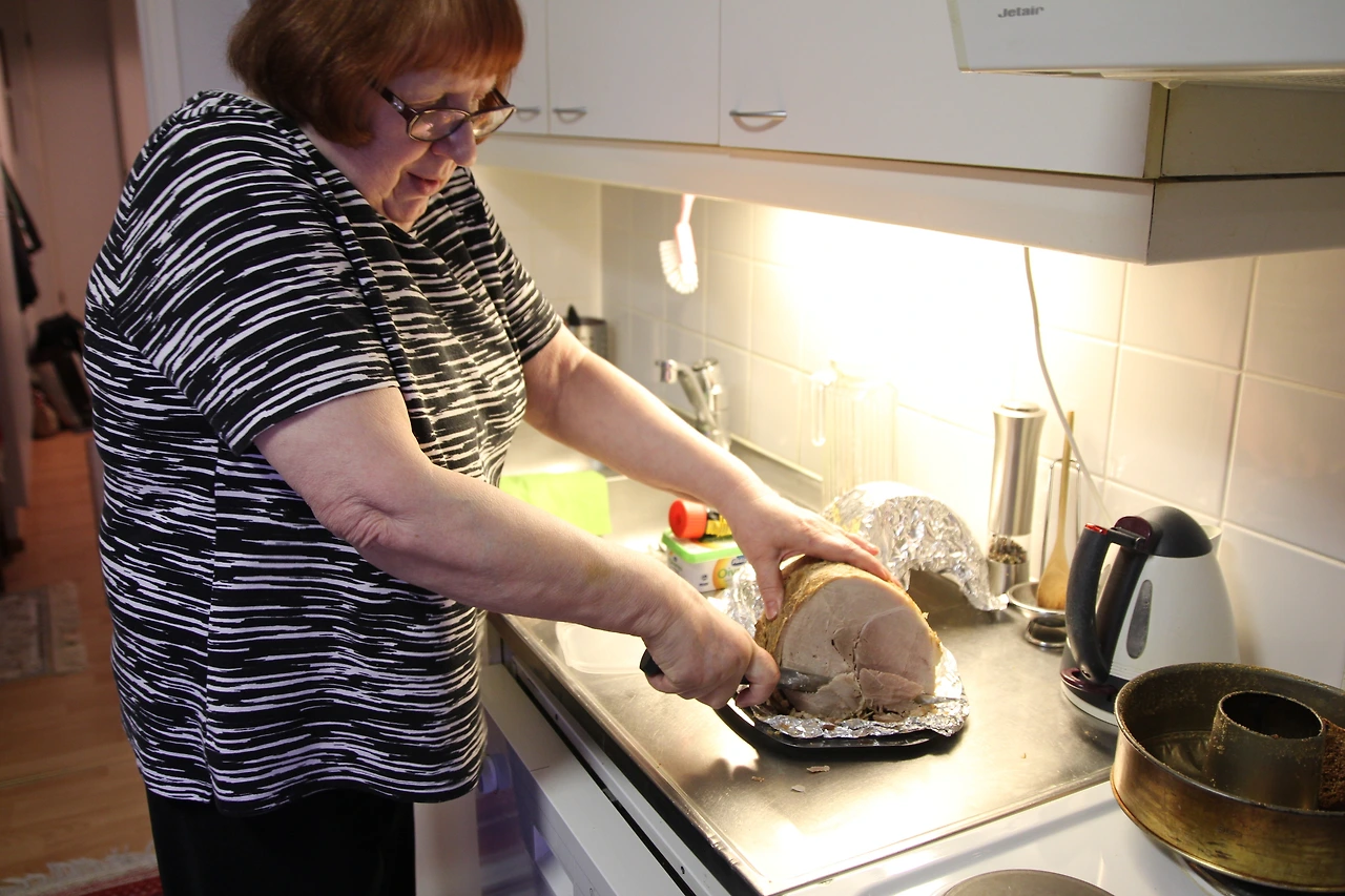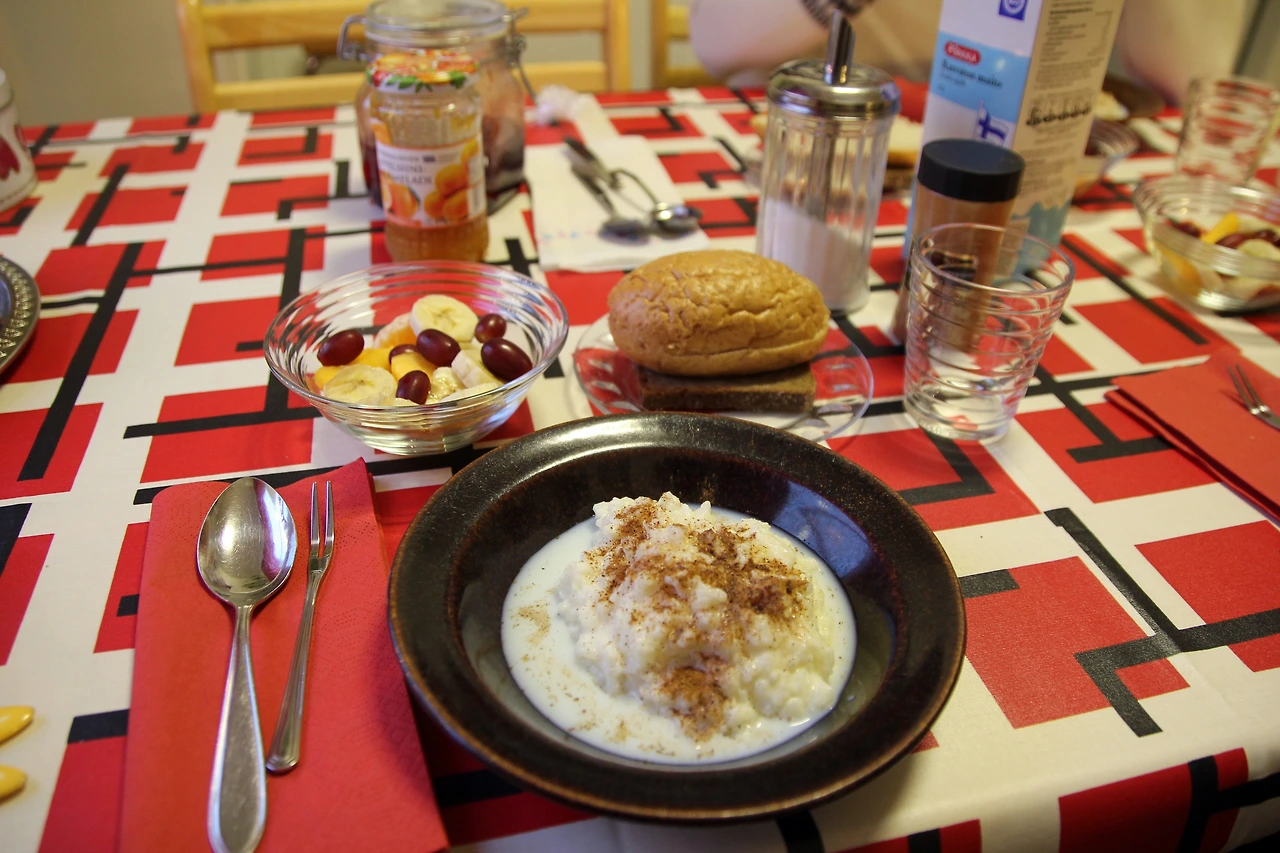 크리스마스 포리지는 크리스마스 이브날 단식기도 후에 먹는 첫 식사였다고 한다. 그래서 소화가 잘되고 위에 부담이 안 되는 음식이어야 했고, 펑소에는 포리지를 호밀이나 일반적인 곡류로 만들었지만 크리스마스에는 쌀로 만든 하얀 포리지를 먹는다고 한다. 그래서인지 호밀이나 다른 곡류로 만든 포리지와 다르게 쌀로 만든 포리지는 부드럽고 고급스런 디저트같았다. 금방 한 그릇을 비우고 더 먹을까 고민하고 있었는데 할머니가 바로 치즈와 접시 한가득 쌓여있는 크리스마스 햄을 건네주셨다. 우리를 위해 크리스마스 햄을 미리 잘라두신 것 같았다.