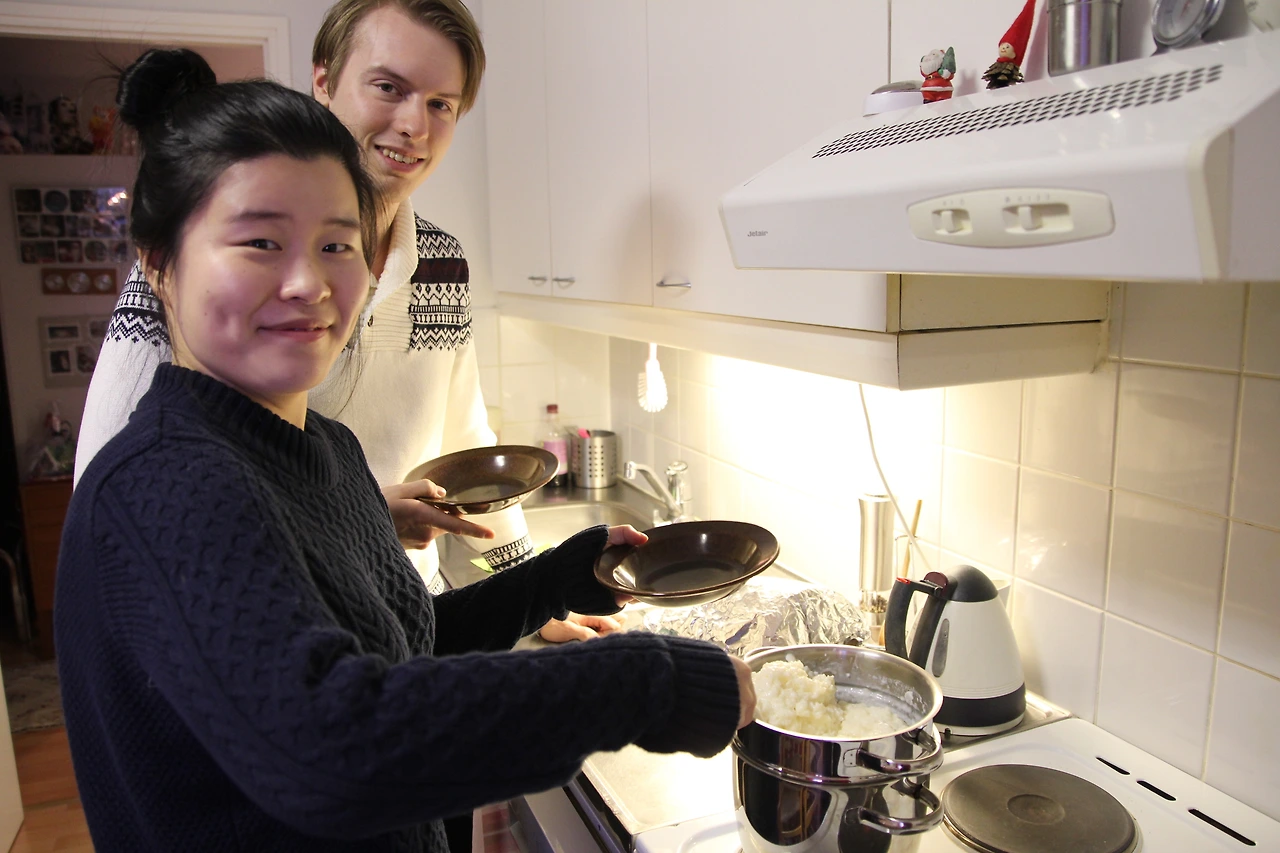 각자 개인용으로 준비된 접시를 들고 먼저 제이드가 냄비에서 크리스마스 포리지를 덜기 시작했다. 평소에는 호밀이나 곡류를 넣고 우유로 끓인 포리지를 먹는다면, 크리스마스에는 특별히 쌀로 만든 포리지를 먹는다고 한다. 우리나라 죽처럼 생겼지만 우유를 넣어 끓여서 그런지 좀 더 하얗고 몽글몽글하다. 크리스마스 포리지(우유죽)를 보니 어제 아침에 먹었던 Viili가 생각났다. 할머니가 우리를 위해 손수 만들어주신 식사인데 입에 안 맞아 남기면 어쩌지 하는 고민이 들었다. 예전에 쌀에 우유를 넣어 끓이고 설탕과 계피 가루를 뿌려 먹는다고 하는 유럽의 음식 포리지에 대한 내용을 책에서 읽었을 때 그때는 이게 디저트지 무슨 식사냐고 생각했건만 내가 그 음식을 아무런 마음의 준비 없이 먹게 될 줄은 몰랐다. 조심스럽게 한 국자를 떠서, 너무 적지 않게 그릇을 채운 뒤에 자리에 앉았다. 옆에서 제이드는 해맑은 표정으로 포리지에 설탕과 계피를 뿌리고 있었다.