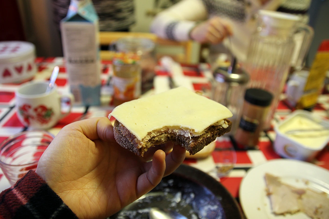 크리스마스 햄을 돼지 뒷다리를 이용해 직접 만드는데, 기름기가 쏙 빠진 단단한 맛이 매력적이다. 미리 개별로 준비된 호밀빵에 버터를 바르고 크리스마스 햄을 올린 뒤에 치즈를 올려서 먹으면 된다. 겨자나 다른 소스를 필요하면 좀 더 발라서 먹어도 된다.