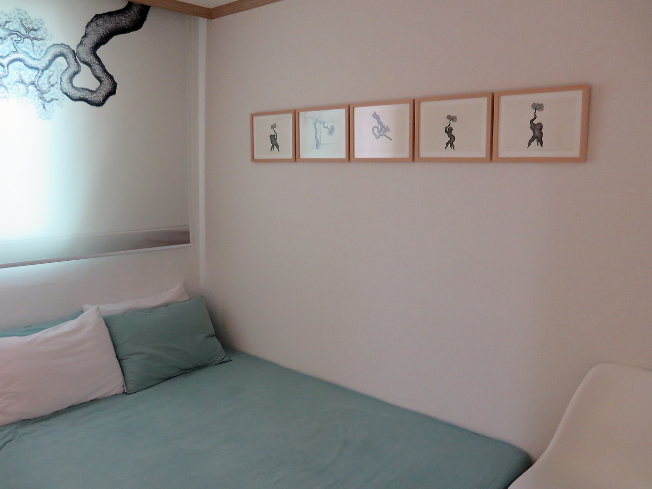 이게 호텔방과 복도, 로비에 작품들이 설치된 것과 무엇이 다르냐고 하면 바로 내가 가장 자유롭고 편하게 있을 수 있는 상태로 작품과 마주할 수 있다는 것 아닐까. 미술관이나 호텔 로비에서 젖은 머리를 하고 파자마를 입은 채로 예술 작품을 관람할 기회는 영영 없을 테니까. (용기를 조금 낸다면 가능하겠지만, 진정 자유로운 기분일지는 개인에 따라 다르겠지.)