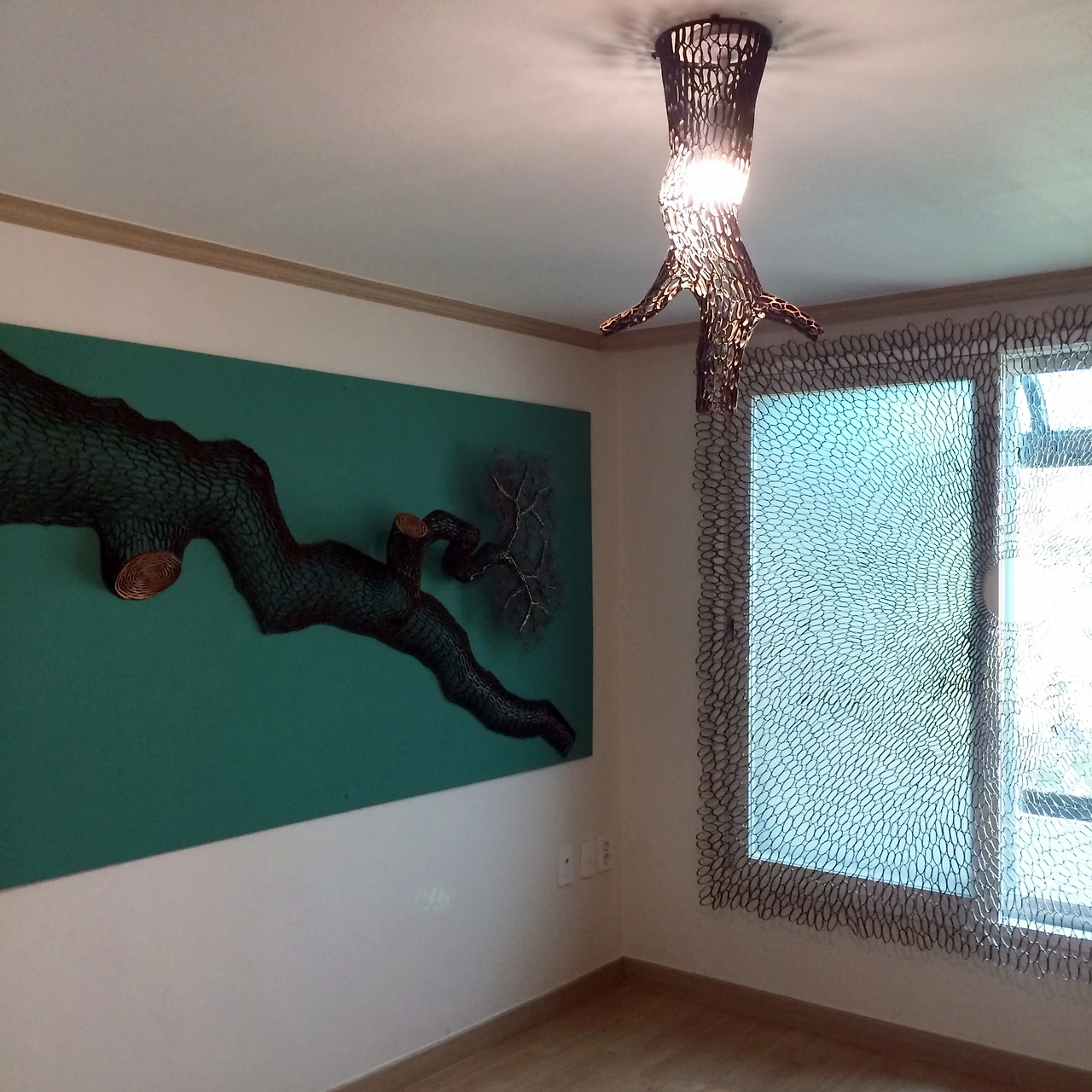 그리고 다른 의미에서는 자신의 집에 놓일 수도 있는 작품을 누군가의 집이라는 장소에서 면밀하게 살필 수 있다는 것도 매력적인 부분이다. 당장 거실 조명에 함께 설치된 작품이나, 커다란 창을 덮은 작품은 갤러리에서 만났다면 이렇게 작품을 설치하겠다는 상상력을 발휘할 여지가 있었을까? 대궐 같은 집에야 작품을 놓을 곳은 충분하겠지만, 내가 살고 있는 곳과 비슷한 크기와 비슷한 구조의 집에 설치된 이길래 작가님의 작품은 찌는듯한 여름날의 숨통을 단도로 잘라 트여놓은 것만 같은 상쾌함과 조용한 선사에 들어온 것과 같은 정갈함 가지고 집과 공존하고 있었다.