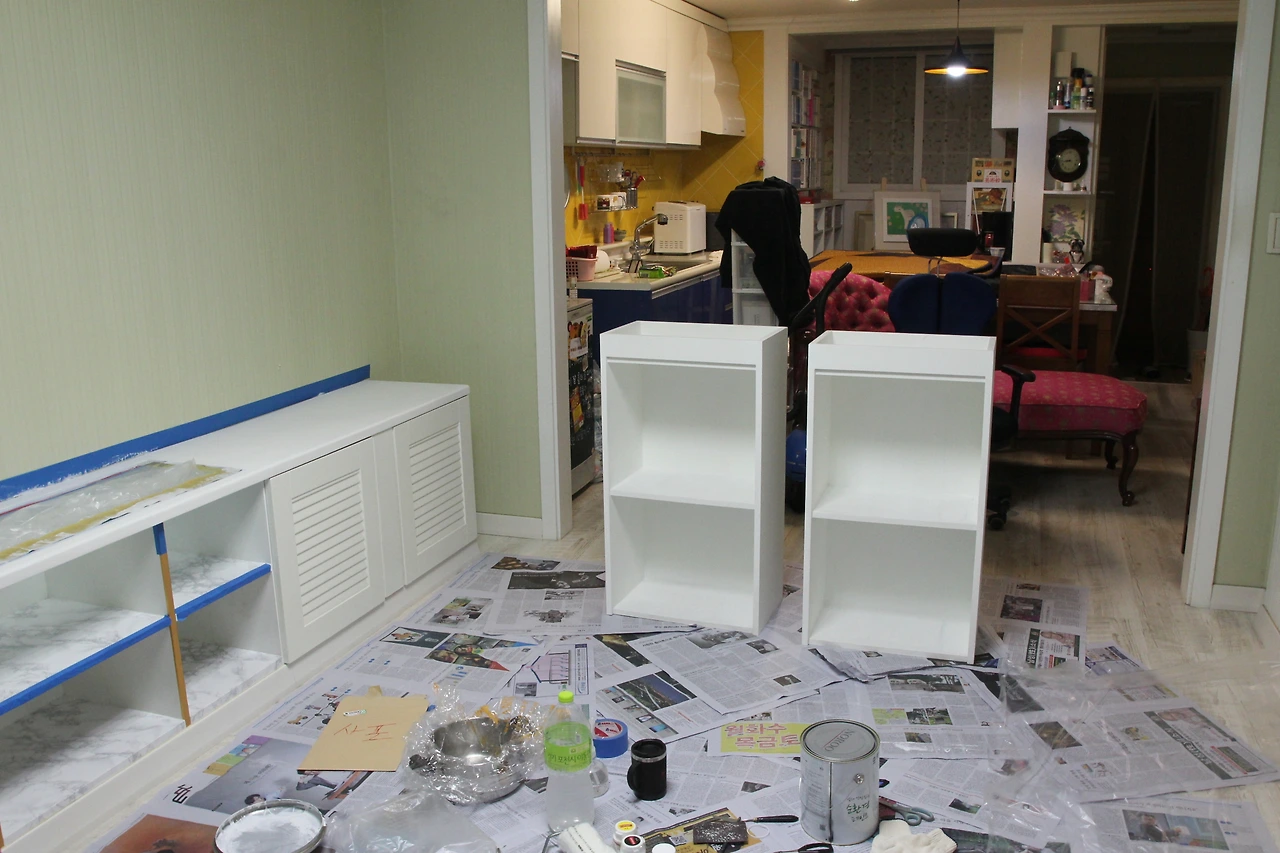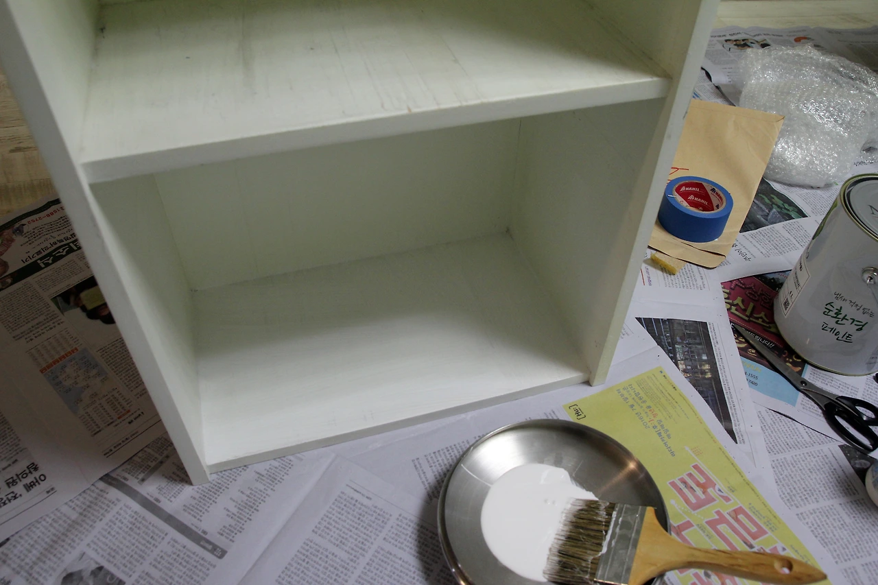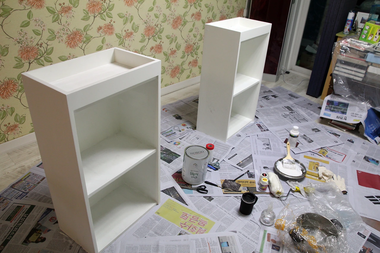 이렇게 선반과 책장은 다 칠하고 말리는 것까지 완료.