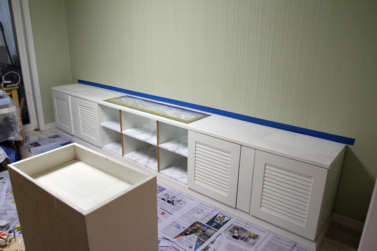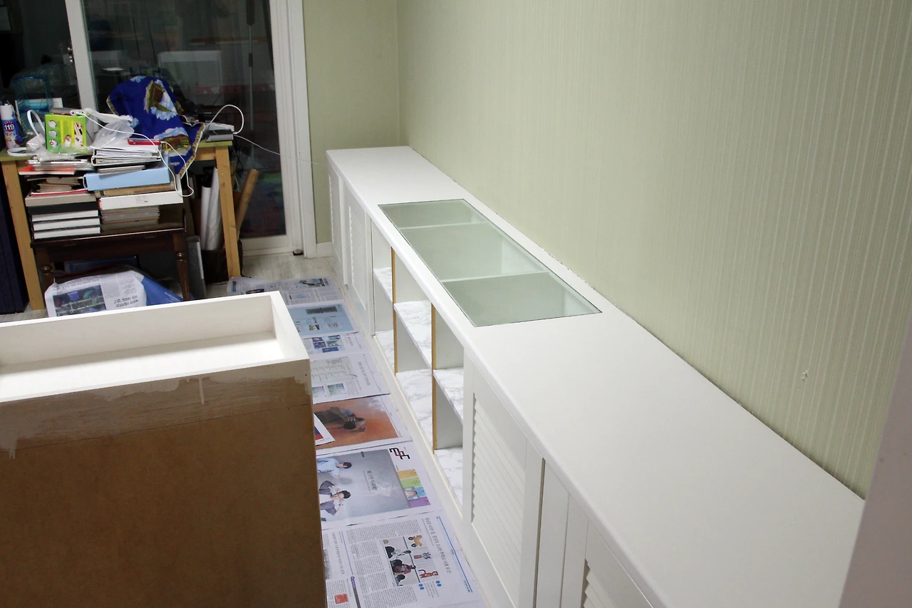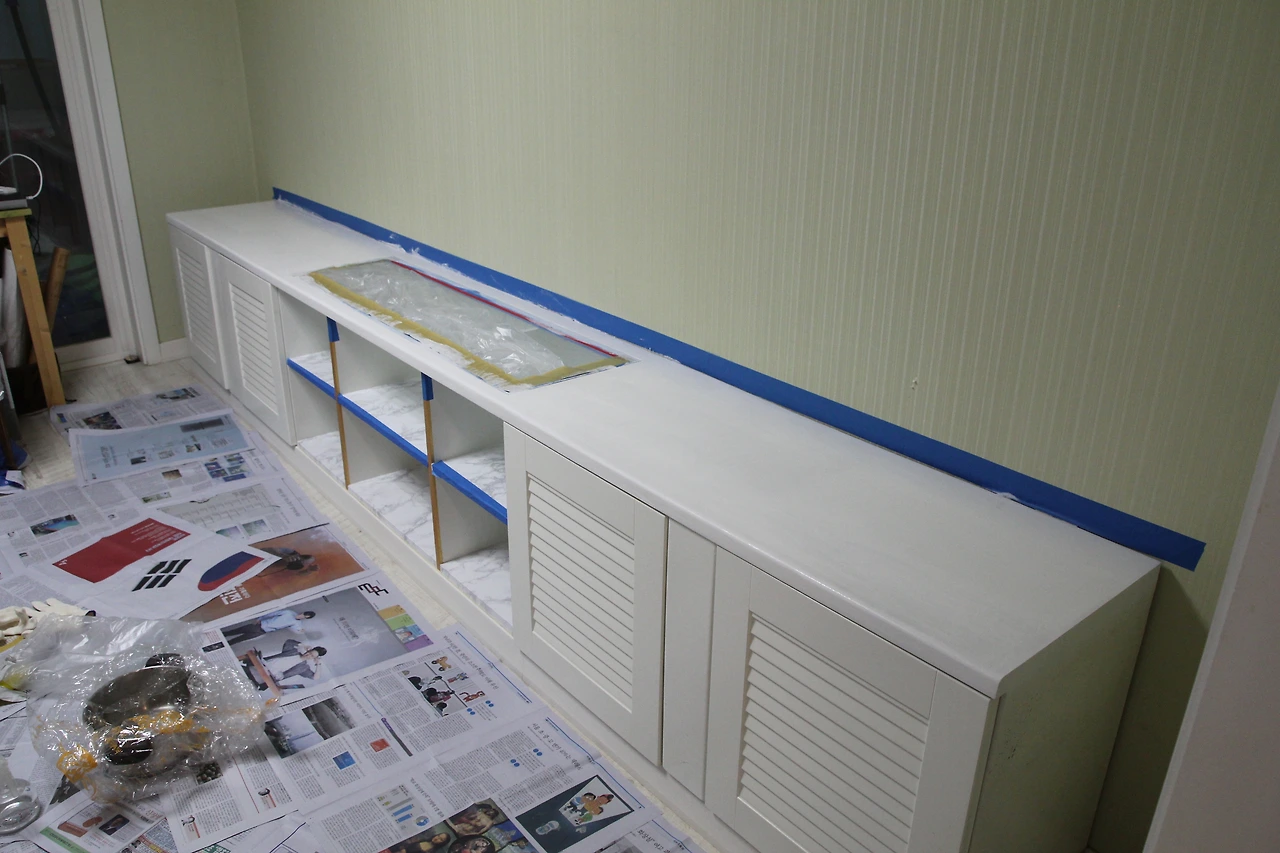 이렇게 선반과 책장은 다 칠하고 말리는 것까지 완료.