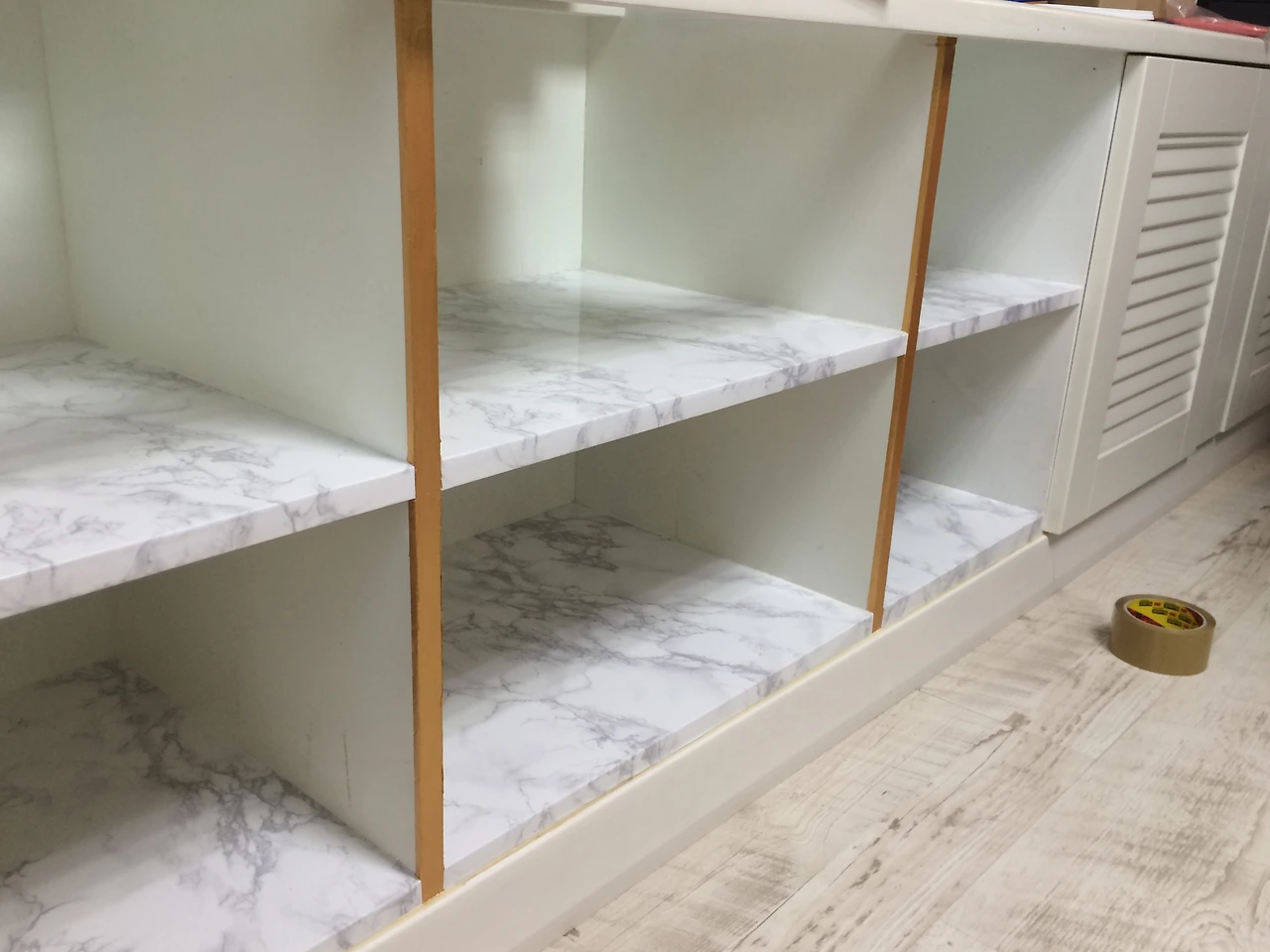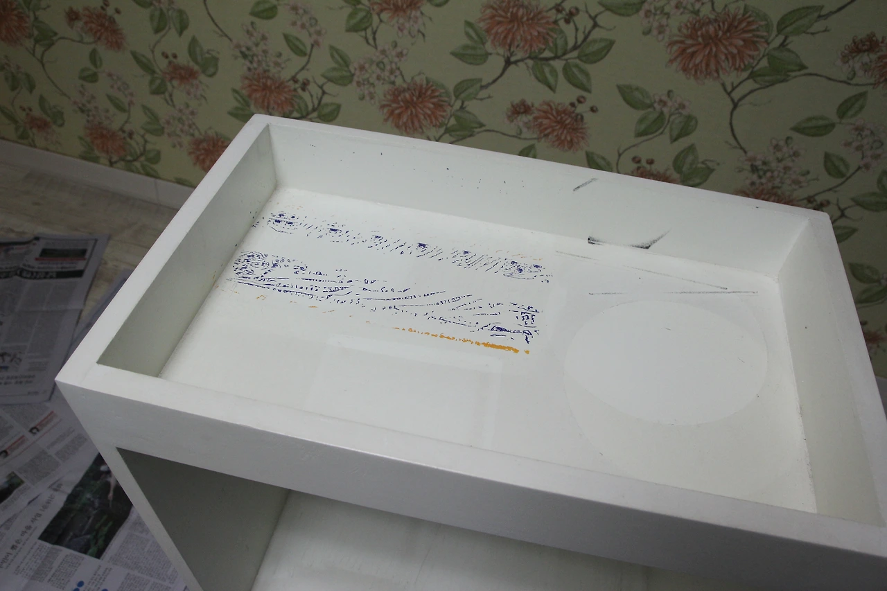 대리석 시트지를 다 바르고 나서 뭔가 포인트가 부족한 것처럼 느껴져 금색 아크릴 물감을 사서 포인트로 발라주었다. 테이프로 다 작업을 해두고 나서 발라야 훨씬 깔끔하고 예쁘다. 여기서 간과하면 안 될 부분은 면으로만 발라주면 옆에서 볼 때 물감 같기 때문에 안쪽으로도 약간씩 더 깊이를 주어야 한다.
