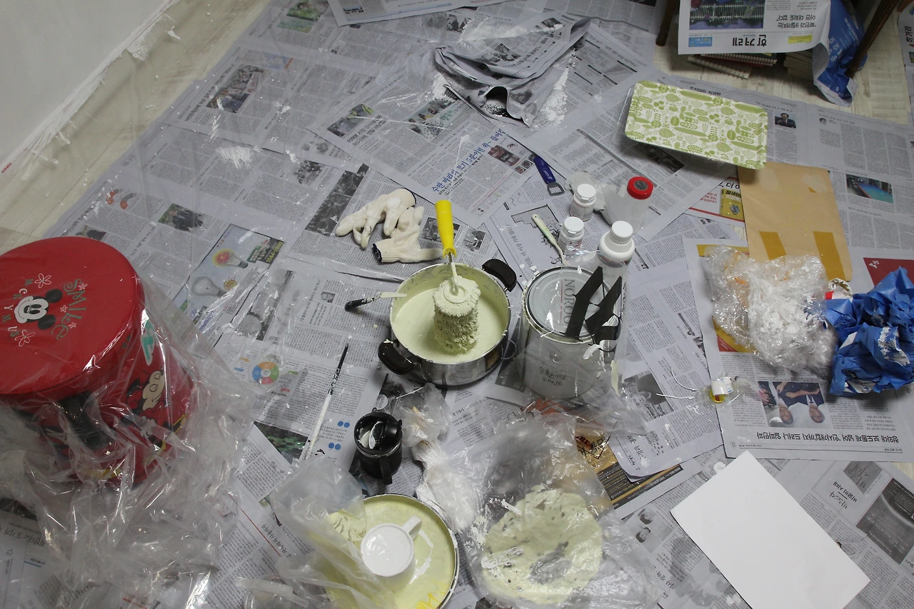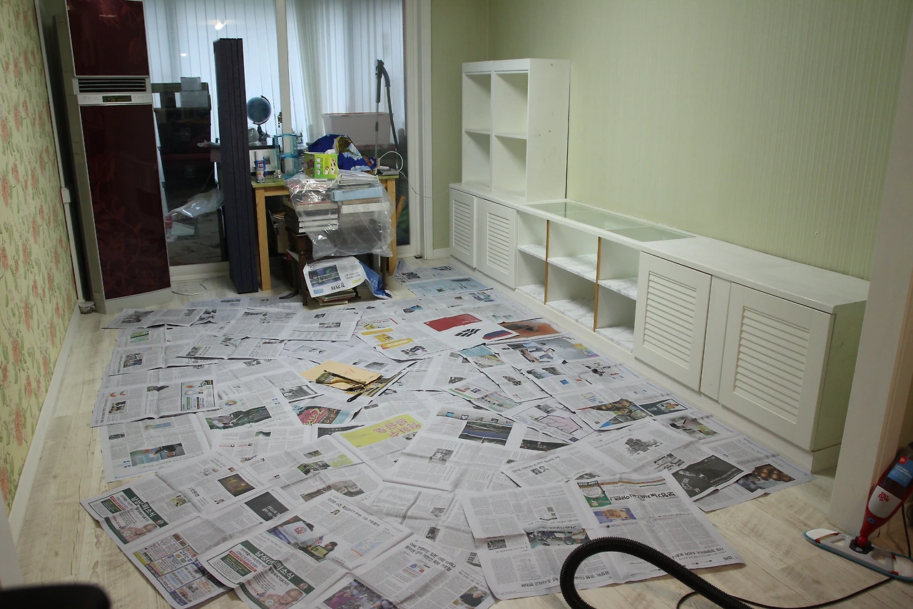 신문지를 깐다. 아 벌써 노동의 냄새가 스멀스멀...