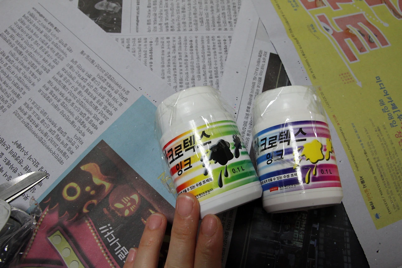 몇 시간 더 말리고, 다시 칠하길 반복한 다음 흰색처럼 보일 때 고민을 시작했다. 어떤 색으로 칠할 것인가. 사실 인디언 핑크와 그레이 투톤으로 칠하려고 조색 잉크를 시켰는데, 할인이 되는 카드가 딱 그 날 자정 까지라서 그 다음날 되기 1분 전에 급하게 옵션을 선택하고 결제를 했다. 그랬더니... 주문을 분명 황색(붉은색)과 검은색을 넣었다고 생각했는데,