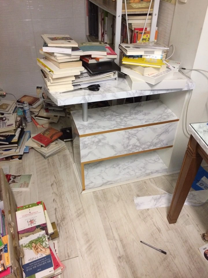 원래는 이 책장과 아일랜드 식탁, 그리고 4인용 식탁에 대리석 시트지를 바를 예정이었는데 찾아보니 생각보다 소소하게 붙일만한 곳이 많았다.