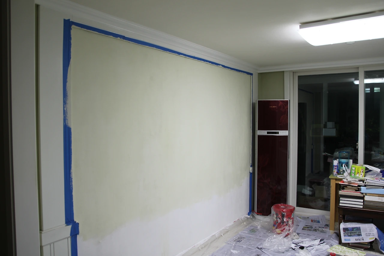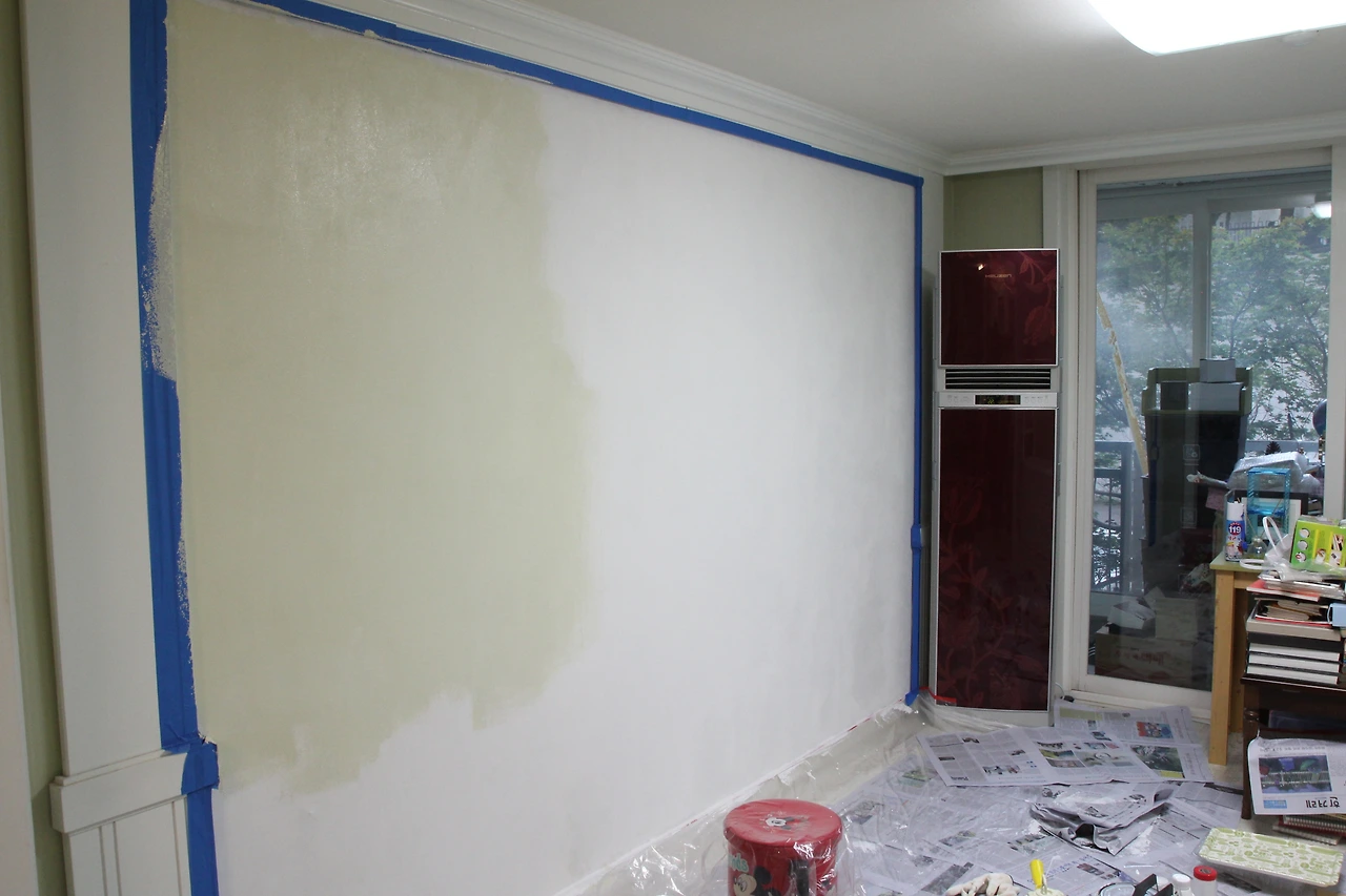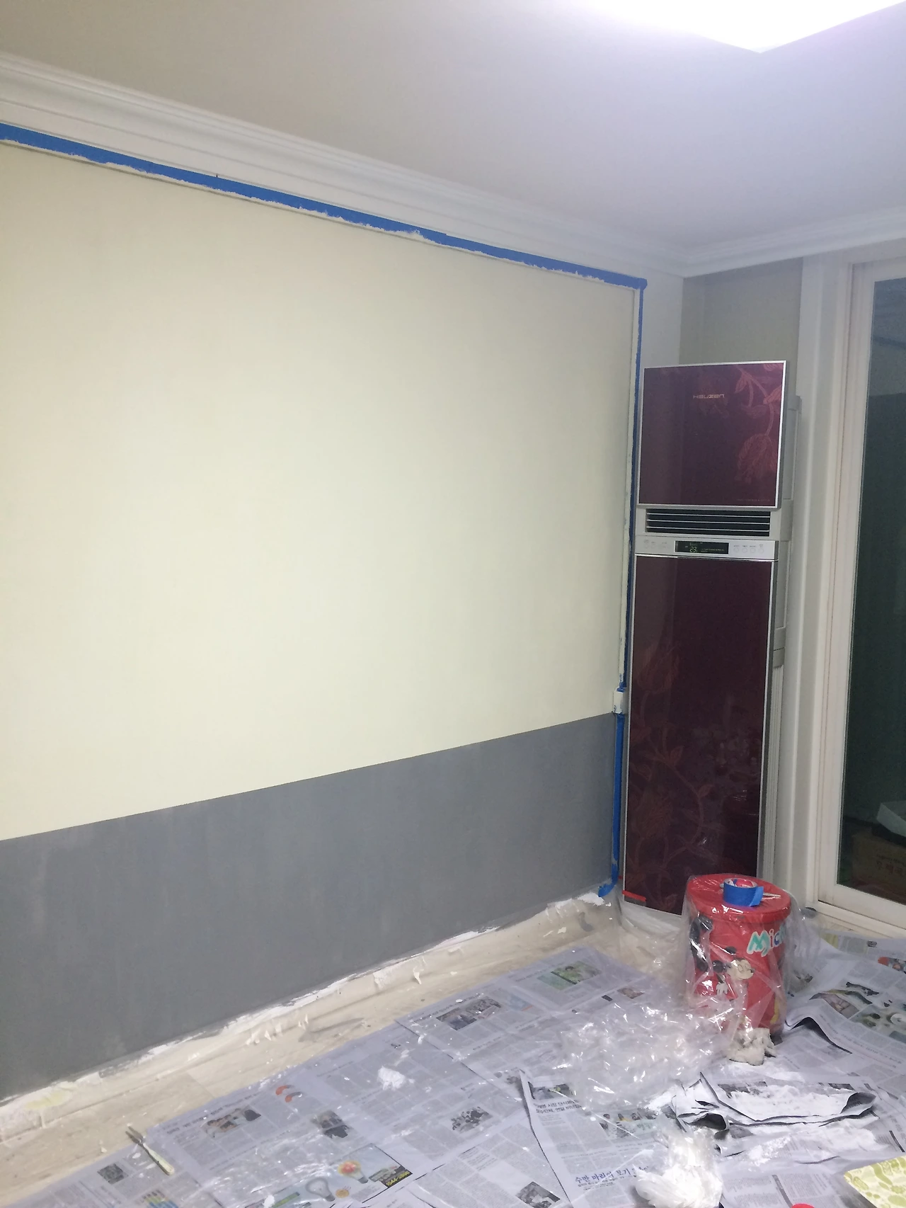 근데 그냥 수성 흰색 페인트 칠해도 될 뻔했다. 생각보다 잘 가려진다.