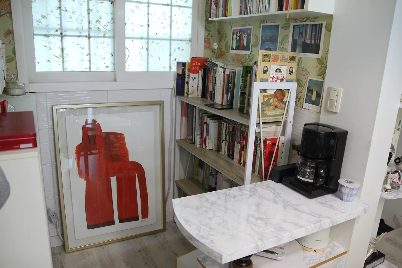 내 취향에 맞게 집을 꾸민다는 것은, 내가 무엇을 좋아하고 무엇을 싫어하는지 또 무엇을 포기해야 하는지 정리하는 것과 같다는 생각이 들었다. 정리를 하면서 제일 힘들었던 일이 버릴 것과 버리지 않을 것을 구분하는 일이었고 결과적으로 제일 많은 시간을 들였던 일이었다. 정리를 하다 보니, 나와 맞지 않는 부분을 고치게 되고 결과적으로 집과 어울리지 않는 물건들을 버리거나 중고로 팔게 되고, 사용하지 않는 물건들은 미련 없이 버릴 수 있었다. 또 그런 공간적 여유가 생기다 보니 평소에는 엄두도 내지 못했던 페인트 칠이며, 시트지를 바르는 일도 할 수 있었다. 곧 액자를 주문해 벽에 내가 그린 그림도 달고, 새롭게 정리한 작업 공간에서 다양한 작업을 궁리해볼 생각이다. 욕심을 낸다면 소파에 어울리는 쿠션도 사고, 러그도 깔고 싶지만 차차 해나가야지.