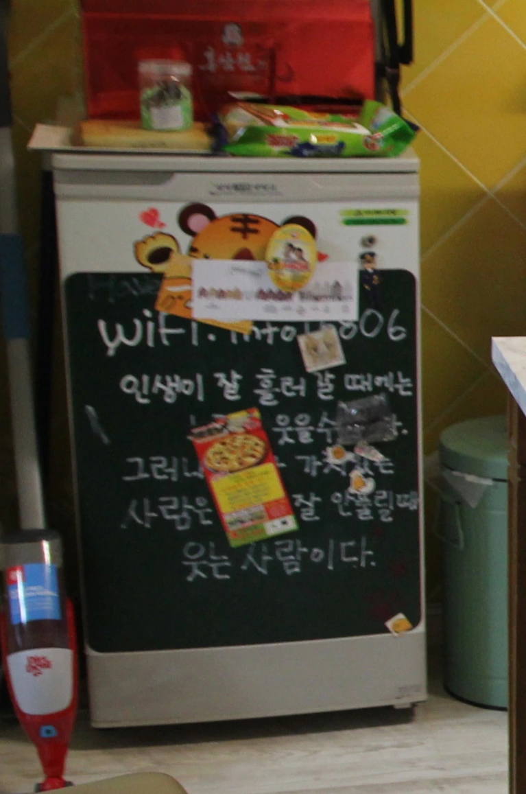 그 위에 홍콩에서 사 온 자석을 붙여주니까 어디서 새로 사 온 냉장고라 해도 믿을 수 있는 새 아이로 재탄생!