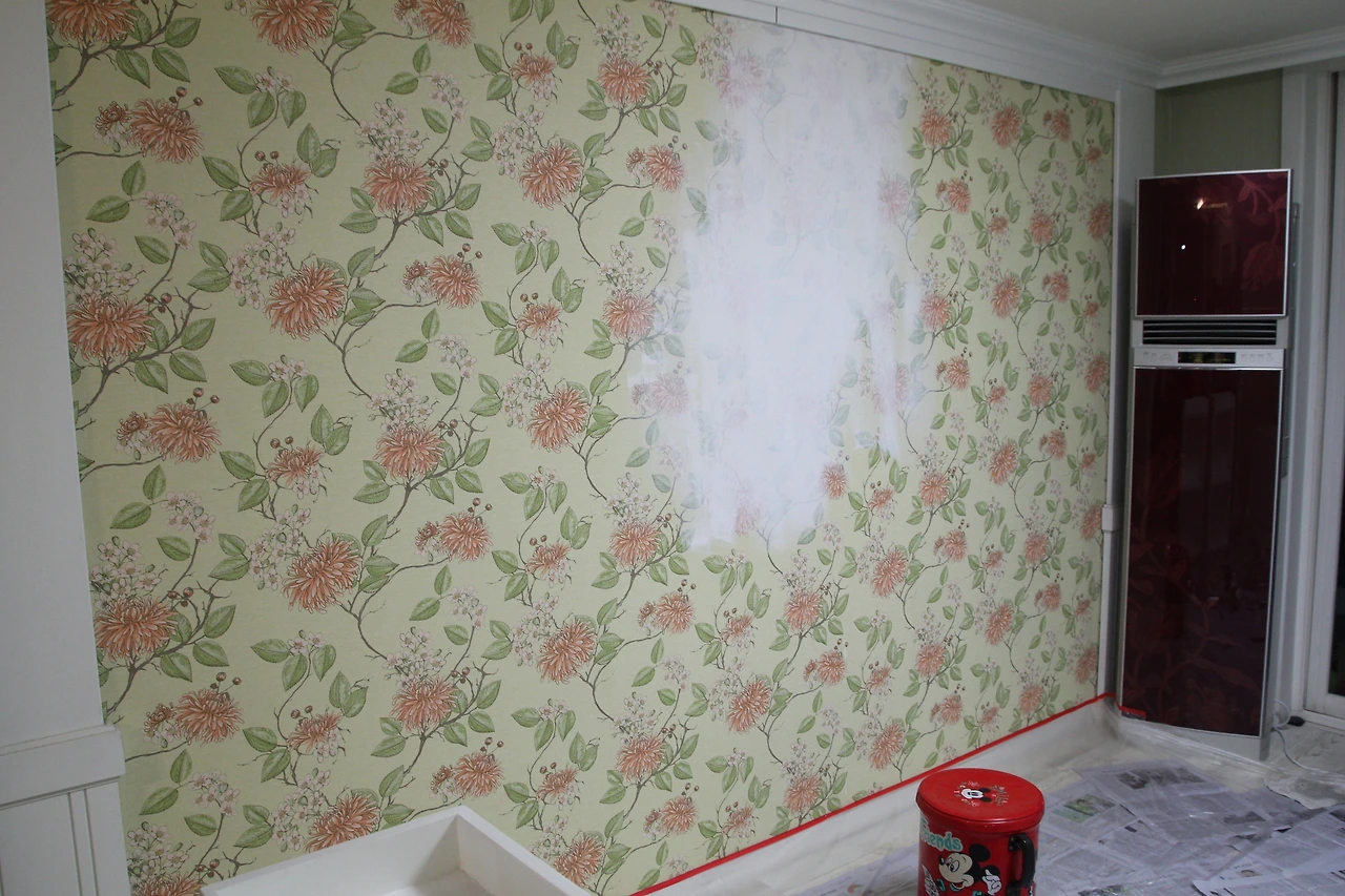 이제 반대편 벽지를 칠할 차례다. 일단 무늬가 안보여야 하니까 일단 발라줌.