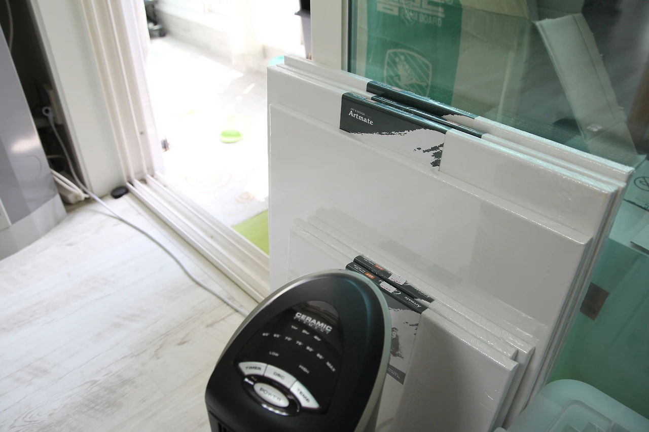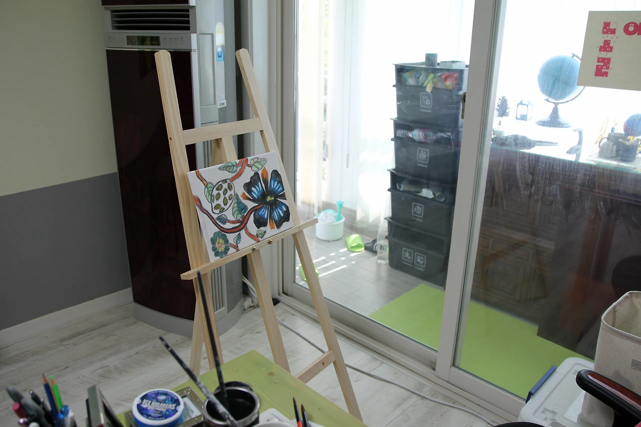 그려보고 싶은 그림 모티브가 많아서 여러 개씩 구매했더니 제주도 여행 후에 커다란 박스로 집에 도착해있었다. 잘 꺼내서 책상 뒤쪽에 세워두었다.