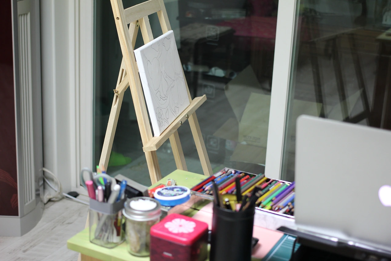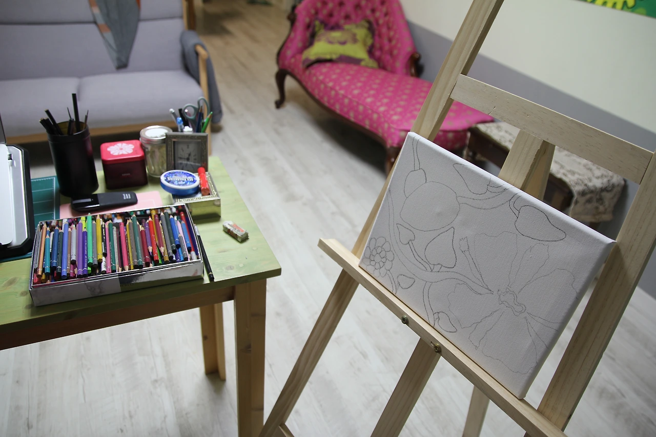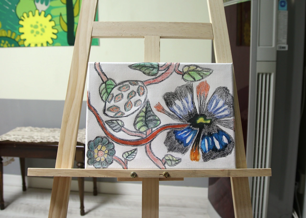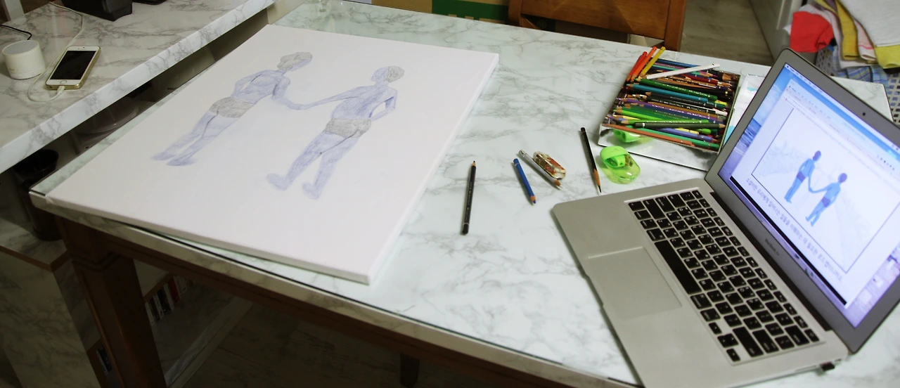 대강 캔버스 천 위에 연필로 선을 따고 마땅한 채색 재료가 따로 없어서 카버 파스텔의 수채 색연필을 꺼냈다. 과연 채색이 잘 될까?