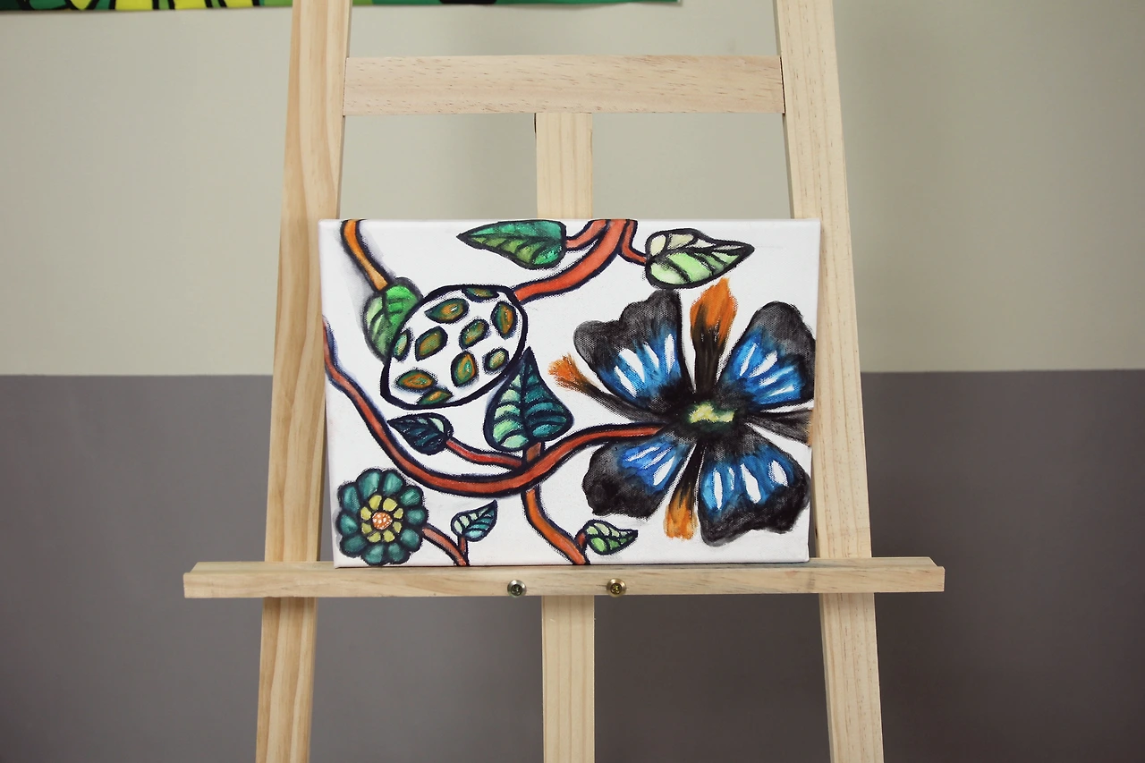 꽃과 나뭇잎 일러스트가 인상적인 마리메꼬의 쿠션을 보고 어찌나 예쁘던지 천을 살까 하다가 연습용으로 사 온 캔버스에 그려보기로 했다.