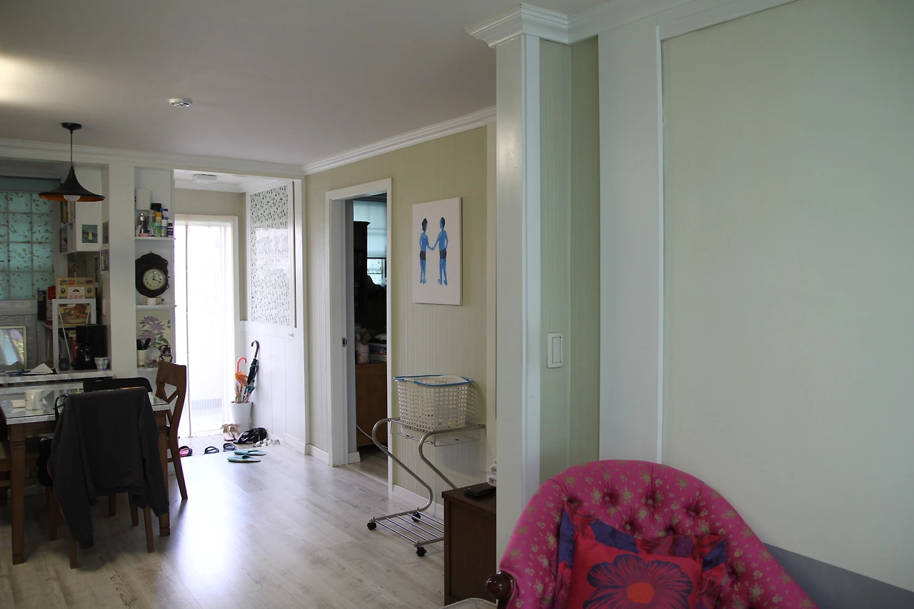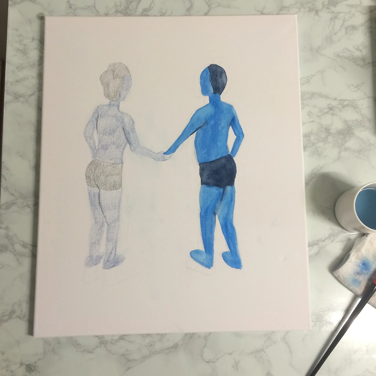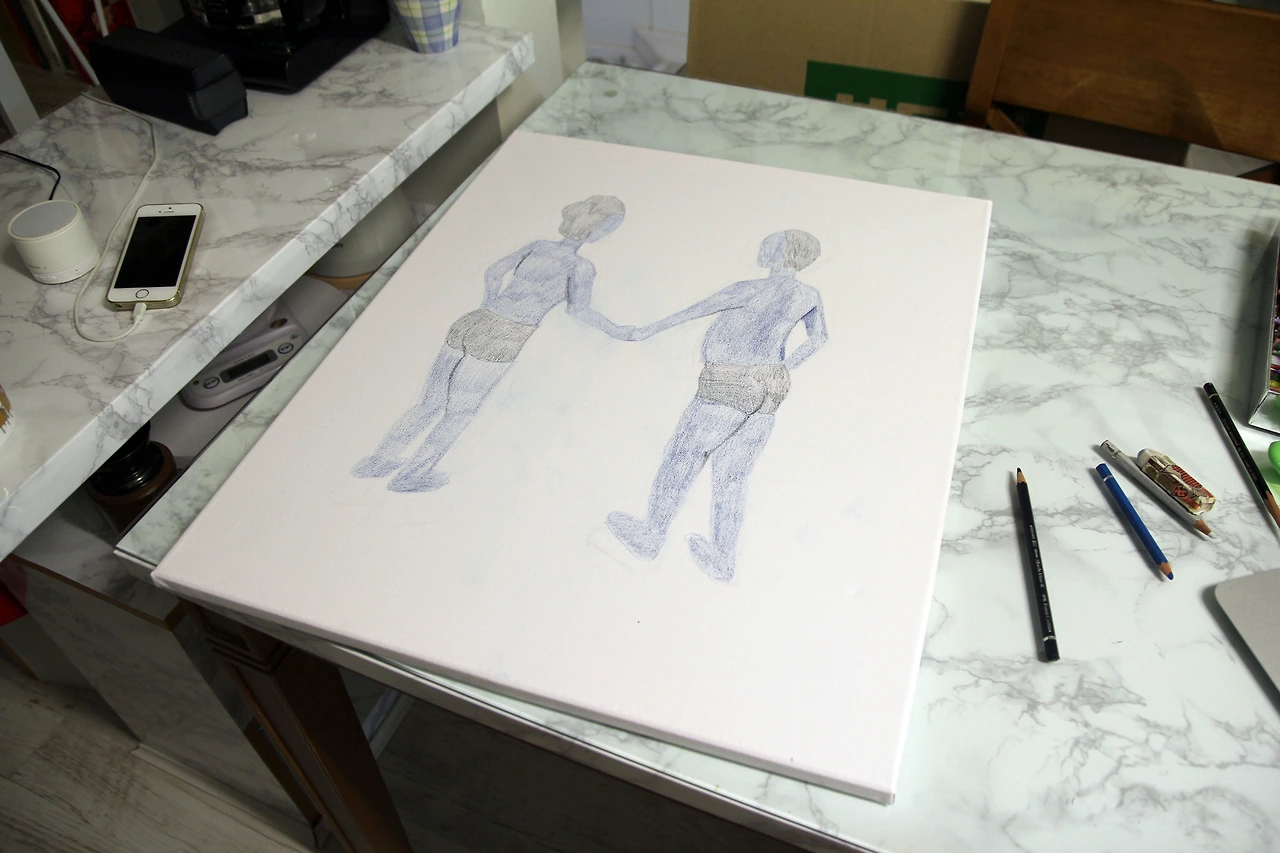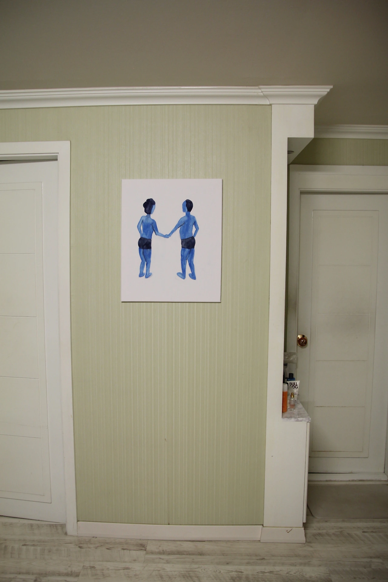이렇게 쓱쓱 붓질을 하고 보니, 배경이 허전한가 하는 생각도 들었지만 그냥 심플하게 두 사람이 서 있는 그림을 걸고 싶었기 때문에 일단 벽에 걸어보았다.