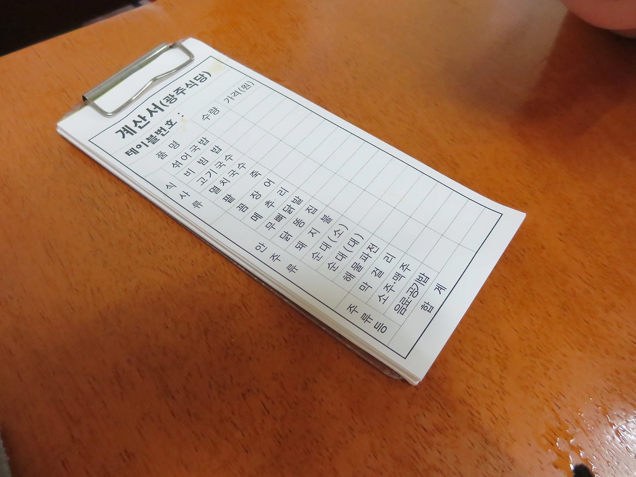 입구 초입에 있었는데 그걸 모르고 빙글빙글 돈 것이 아까웠지만 솔솔 풍기는 꼼장어 냄새가 얼마나 기가 막히던지. 가게 앞에 기다리는 사람들 뒤에서 서서 침을 꼴딱꼴딱 삼켰다. 자리는 생각보다 금방 났다. 자리에 앉아 계산서를 들여다보니 메뉴가 생각보다 많았다.