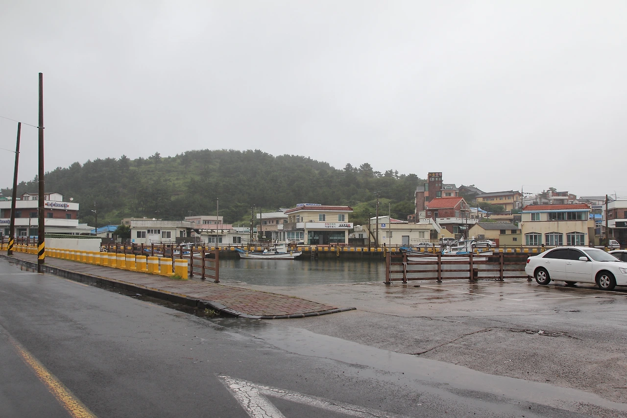 다음 날 아침 눈을 뜨니 비가 내리고 있었다. 간밤에는 천둥도 쳤다고 했다. 아침을 먹을 겸, 낭만 제주 사장님께 추천받았던 국밥을 먹으러 우산을 들고 엄마와 산책을 나갔다. 골목도 항구도 모두 촉촉했다. 나는 카메라로 엄마 사진을 몇 장 찍고는 카메라가 상할까 얼른 집어넣었다.