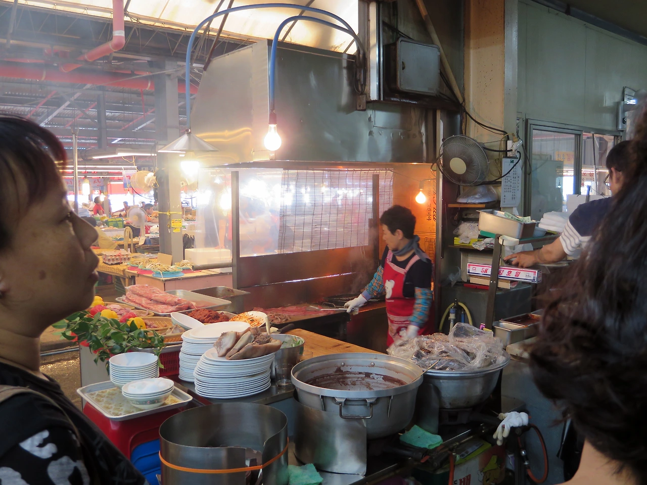 꼼장어 1인분과 섞어 국밥 한 그릇을 시켰는데 섞어 국밥은 소담한 것이 한 사람이 후루룩 먹기에는 제격이다. 깊은 국물은 아니지만 안에 들어간 돼지 부속들이 맛깔나다. 다진 양념을 풀어 먹으면 얼큰한 것이 술이 절로 생각난다. 특히 북적거리고 시끄러운 시장 안 식당에서는 더더욱 더위를 식힐 시원한 막걸리 한 사발이 그리워진다.
