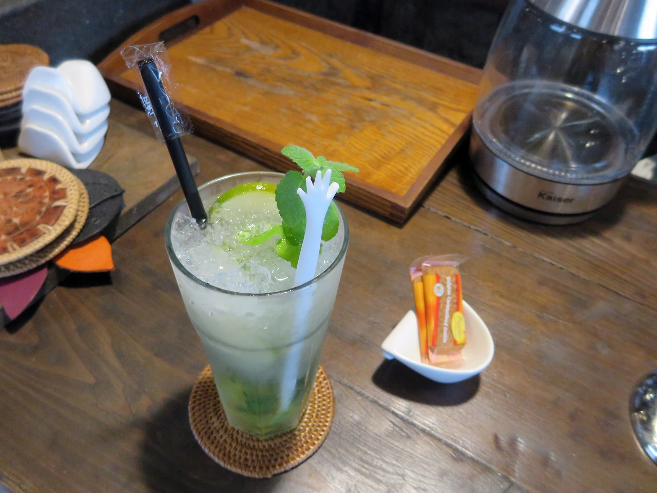 두 번째 날 아침, 흐린 날씨에 달달한 디저트와 씁쓸한 커피가 그리웠다. 걸어서 10분이면 갈 수 있는 로치아에 가서 아침으로 찹쌀 와플을 먹기로 하고 준비를 했다. 로치아 커피 로스터스는 제주 토박이 주인장이 운영하는 중후한 매력이 있는 독특한 카페다. 저번 여행에서 후다닥 아이스커피만 마시고 일어난 것이 아쉬워서 다시 들렸는데, 마침 여름 시즌 메뉴인 모히또가 곧 끝난다는 말에 드립 커피 말고 모히또를 시켰다. 그리고 아침밥 대신 찹쌀 와플도 싱글로 하나.
