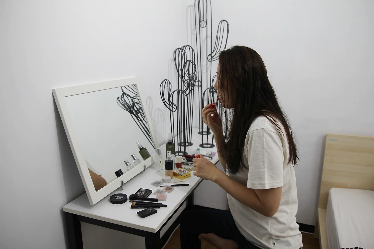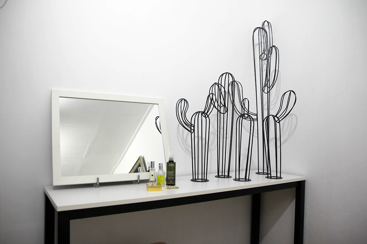 숙박공간에 예술을 불어넣다에 적었던 것처럼 감은 머리를 털면서 그림을 봤다. 나 다음으로 샤워를 한 친구는 그림 아래 주저앉아 머리를 말렸다. 우리 둘 다 철골 선인장들 옆에서 화장을 했다. 그렇게 곁눈으로 스치듯 보는 작품들은 하룻밤 사이에 친구가 된 것처럼 친근했다. 체크아웃을 하고 버스 정류장으로 가는 동안 친구는 다음에는 좀 더 화사하고 컬러풀한 그림들이 있는 숙소에 가보고 싶다고 이야기했다.