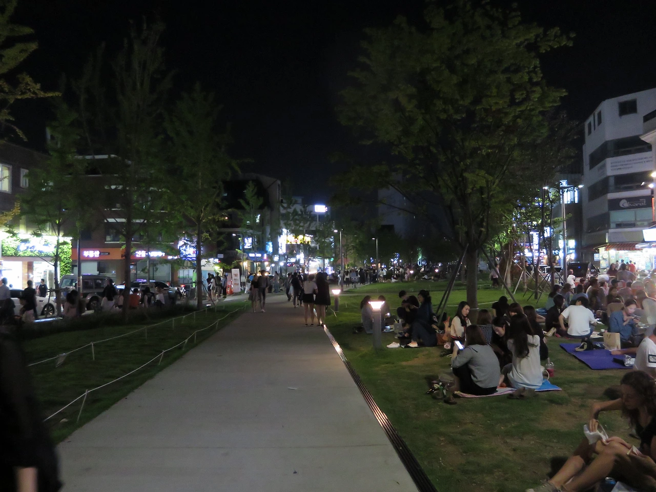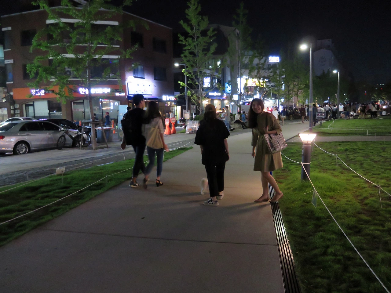 피곤해하는 친구를 끌고 불금의 연트럴파크(연남동의 구 경의선 철로길)를 걷고 연남동 탐방을 했다. 새벽 3시까지 하는 심야 식당들이며 도시의 이름을 딴 야시장들과 술집들은 문전성시였다. 속이 탄다는 친구의 말에 빙수 하나 먹고 수다를 떨다가 파닭을 사들고 숙소로 돌아왔다. 물이랑 가벼운 알코올류, 내일 아침에 먹을 과일들도 샀다.