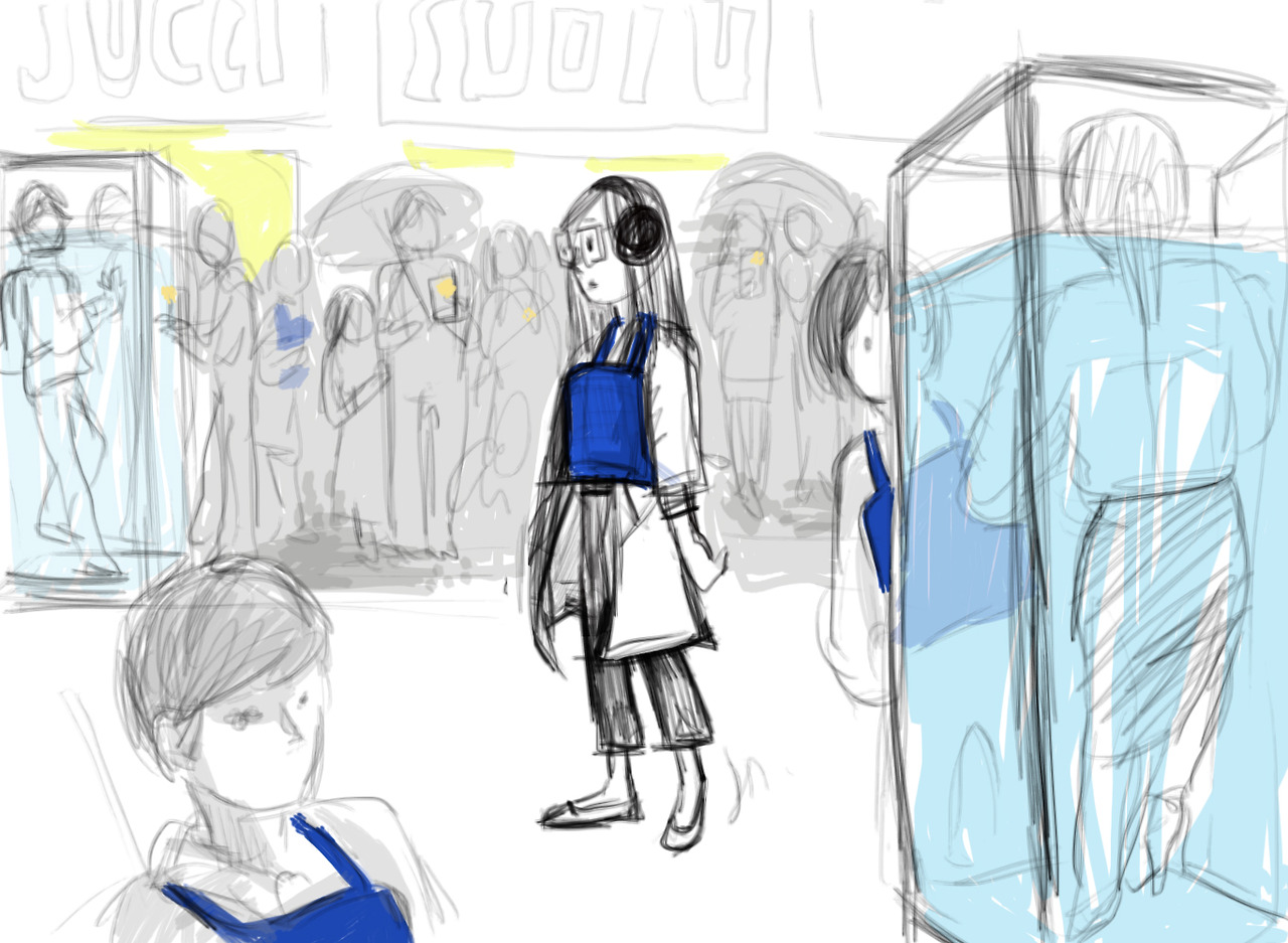 비는 옷을 적시지 못할 만큼 그러나 분명하게 또옥또옥하고 하늘에서 떨어지고 있었다. 차갑고 축축한 유플렉스 광장 위 하늘은 먹빛으로 가득하고 그 중간쯤을 전깃줄 몇 개가 가로지르고 있었다. 나는 그 아래에서 헤드셋에 나오는 지시에 주의를 기울이며 몸을 움직였다.