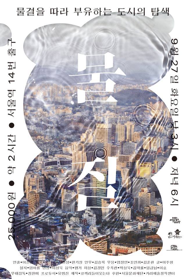 도시의 풍경은, 현대인의 삶은, 부유하는 물결 위의 먼지와 같다. 반복되는 일상 속에 어디론가 달려가고 그 방향을 자신이 정한 곳이라 생각하지만, 거대한 물결이 흘러가는 방향은 나의 의지밖에 있을지도 모른다. 익숙한 거리를 매일매일 걷고 있지만, 조금만 다른 시선에서 보면, 주변은 낯설기 그지없다. 물. 질. 은 거대 도시 서울에 투영된 사람들의 일상을 한 발짝 떨어져 비춰보는 이동형 공연이다. 공연은 채워져 있지 않다. 다만 다른 시공간의 차원에서 도시와 일상을 바라볼 수 있도록 안내할 뿐이다.