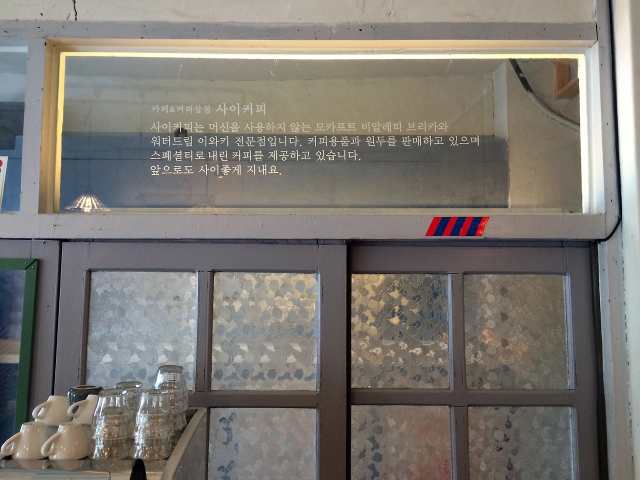 우리 둘다 맛있고 작고 좋은 곳으로 기억하는 곳이라 발걸음을 옮겨 사이커피로.