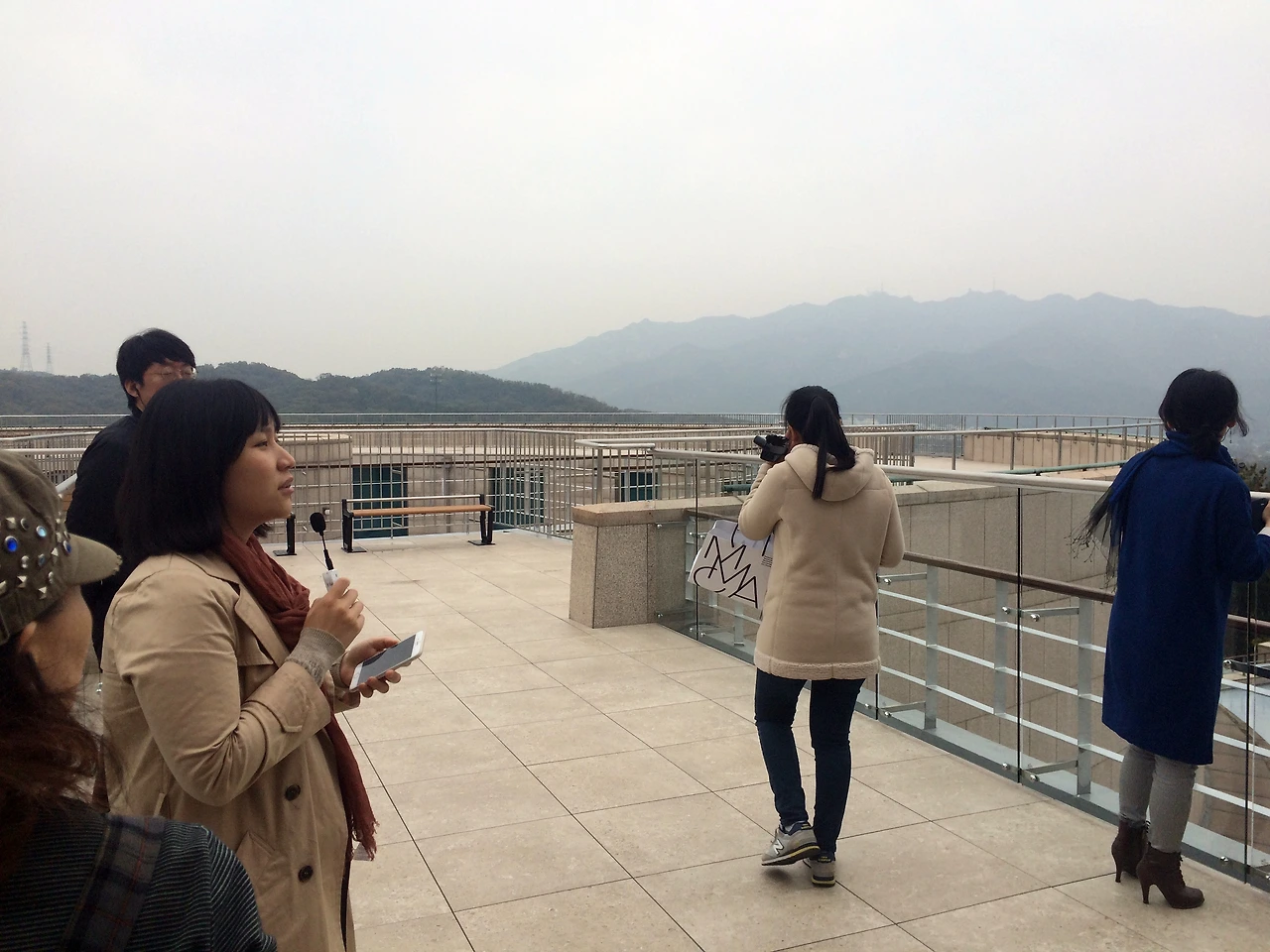 저 멀리에는 리프트와 관악산이 보였다. 좋은 풍광에 눈이 즐겁다 했더니 미술관에 절대로 있어서는 안 될 것 중 하나가 불이라는 것과 관악산의 화기가 미술관의 반대 방향을 향하고 있어 이 곳이 미술관에 있어 좋은 입지라는 설명을 듣고 나니 미술관이야 접근성이 좋고 건물이 전시하기에 훌륭하면 그만 아닌가 하는 내 짧은 생각과는 별개로 오래도록 사용될 건물을 짓는 일에는 그러한 고민까지 해야 하는구나 하는 놀라움마저 느껴졌다.