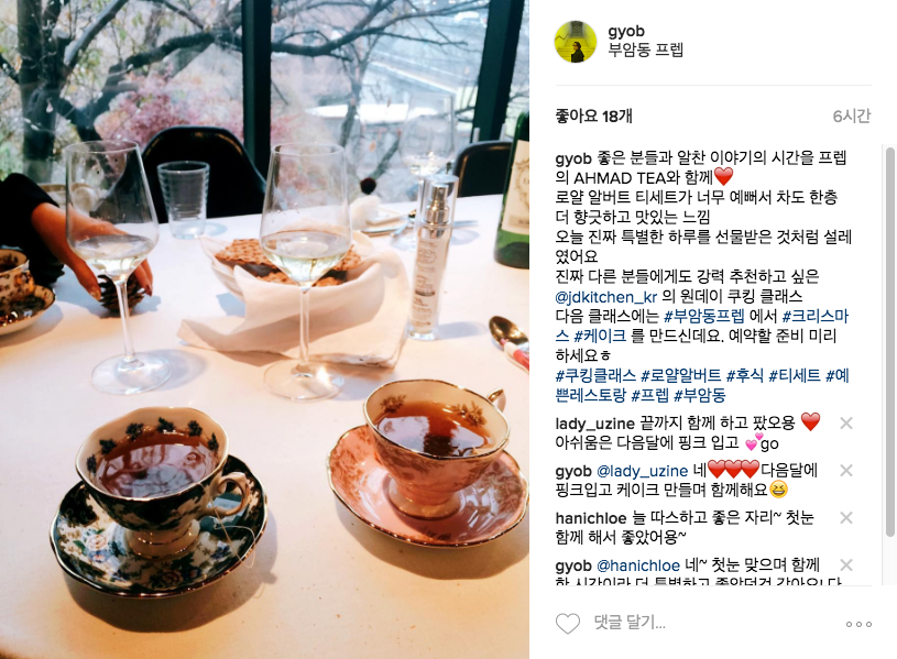 그래서일까 이 날의 쿠킹클래스는 자리에서 일어나기가 아쉬워 쿠킹 클래스가 끝나고도 차를 마시고 커피를 마시고 따뜻한 물을 마시고 와인까지 모조리 동낼 때까지 자리에서 일어나지 못하고 이야기를 나눴다. 내가 몰랐던 또 다른 분야의 일이며 다른 나라에서 새롭게 떠오르는 트렌드나 유행, 여행지에서의 자신만의 경험들을 이야기를 하다보니 내가 하려는 새로운 도전에 조언을 받기도 응원을 받기도 했다.