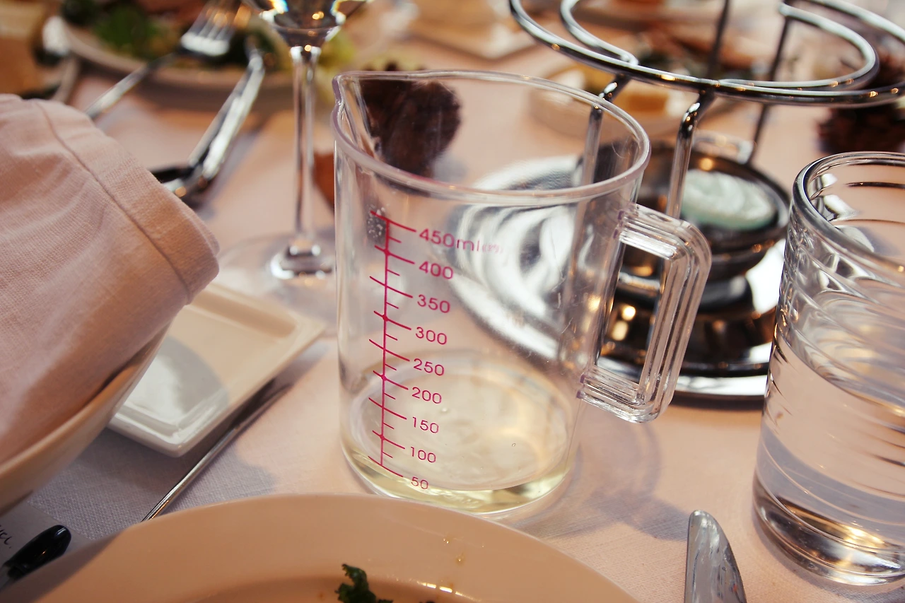 나는 그동안 화이트 와인 50ml에 콘스타치 2ts, 체리술 2Ts를 한 곳에 계량한다. 체리술이 많이 들어가면 쓰니까 없으면 안 넣어도 된다고 한다.