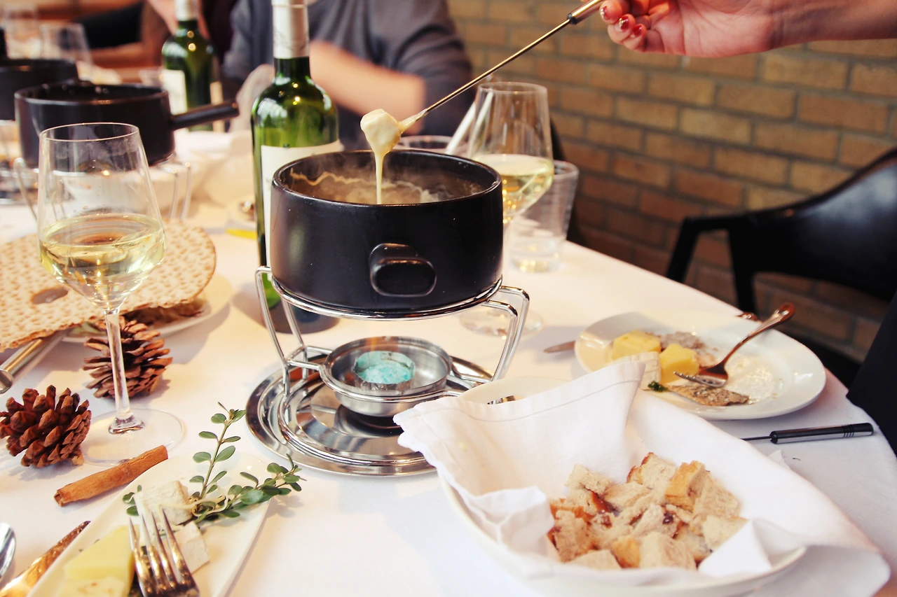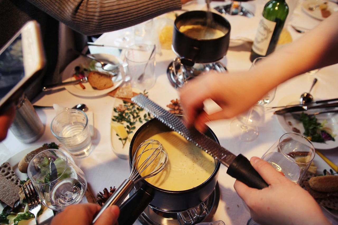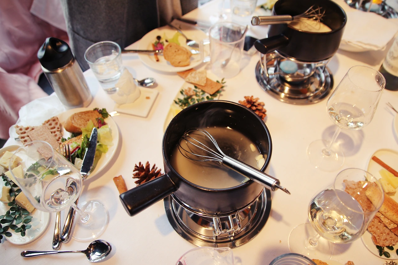치즈치즈한 치즈 퐁듀의 좋은 점을 하나 더 뽑자면, 치즈를 거의 다 먹었으면 마시던 와인을 부어주고, 치즈를 더 넣고 그리고 넛맷도 더 넣어주고 재료만 추가해서 먹으면 된다. 치즈에는 비스킷도 빵도 꼬챙이에 찍어 치즈만 찍어먹으면 되니 옆 사람과 눈을 마주치고 이야기할 시간이 많았다. 이건 우리나라의 전골 요리나 일본의 나베 요리, 중국의 훠궈 요리와도 일맥상통하는 것 같다. 추운 날씨에 커다란 냄비를 중앙에 두고 후후 불며 먹는 느긋한 요리.