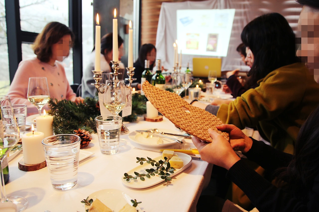 치즈와 함께 먹을 비스킷과 호밀빵이 담긴 접시가 테이블을 빙글빙글 돌수록 옆 사람과 유쾌하게 웃고 짧게 이야기를 나누며 점점 친해지기 시작했다.