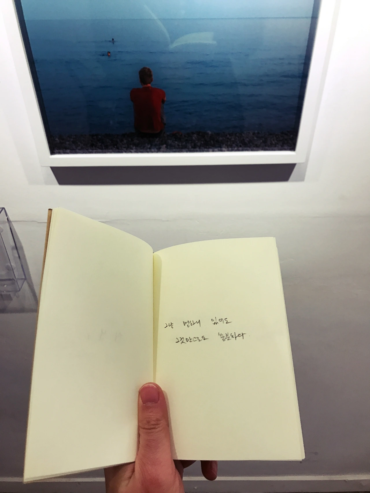 모든 사진 앞에는 작가가 직접 쓴 작품 노트가 있다. 한 작품 앞에서 작품노트를 찬찬히 읽어 내려가는 다른 관람객의 모습을 보면 어쩐지 이 두 젊은 친구의 감성이 결국 동일한 나이 때의 그네들을 관통하고 있는 것이 아닐까 하는 생각도 들었다. 개인적으로는 미술관의 작품들도 이렇게 작품 노트가 있으면 좋겠다는 생각이 들었다. 그리고 이 두 친구과 비슷한 연배인 친구들도 데려왔으면 더 좋았을걸 이라는 생각과 함께.