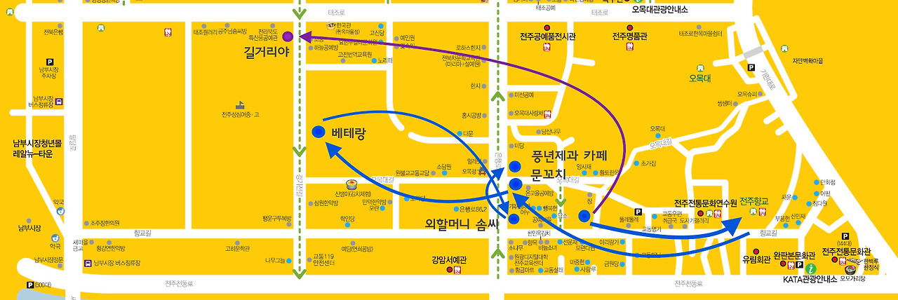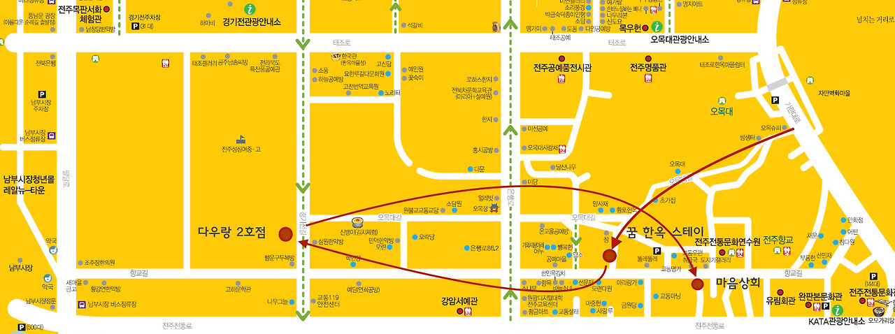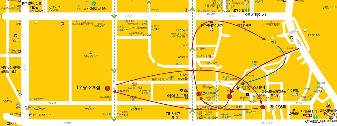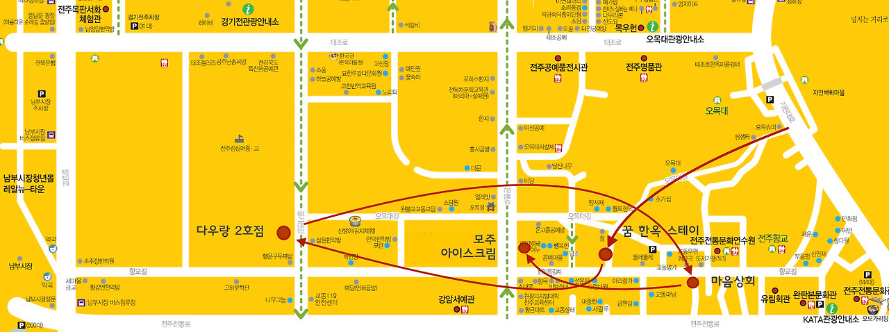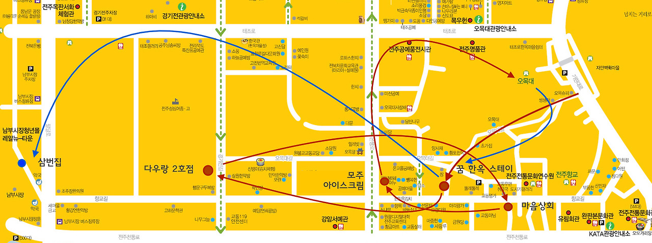 *도보로도 전주 영화의 거리를 갈 수 있지만 거리가 좀 멀기 때문에 배를 꺼트릴 겸 걷는 것을 추천