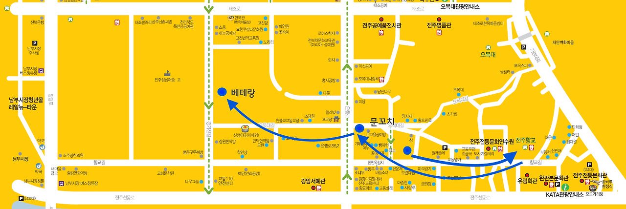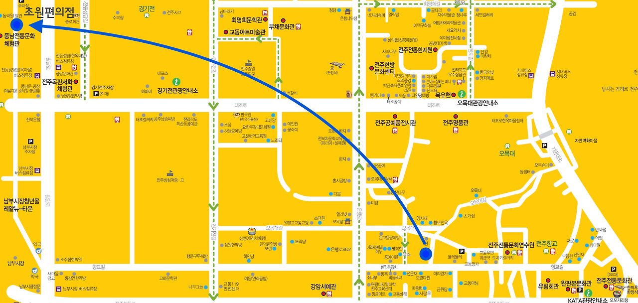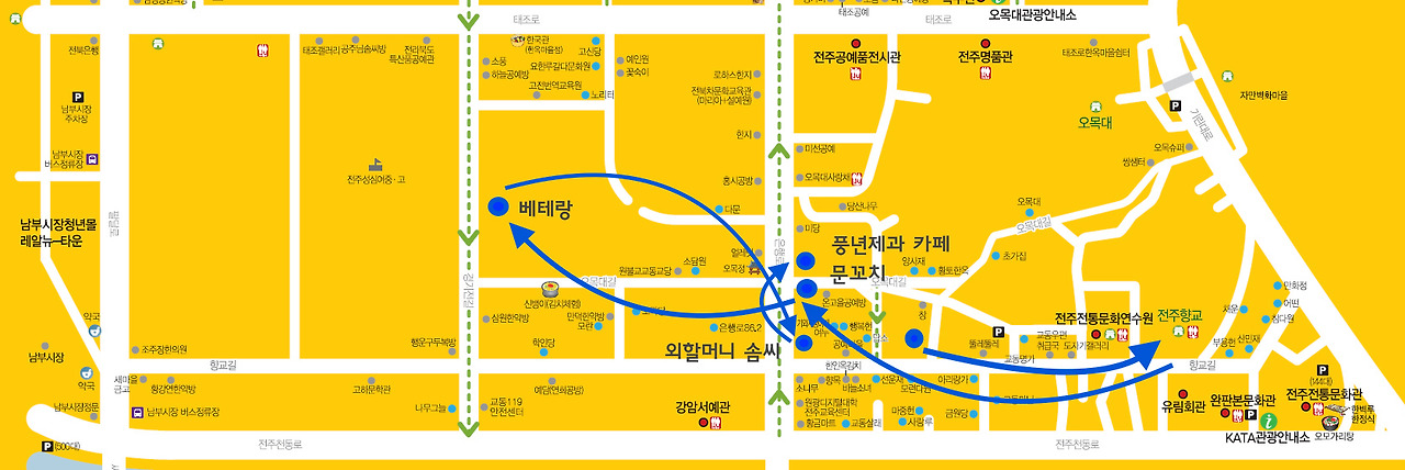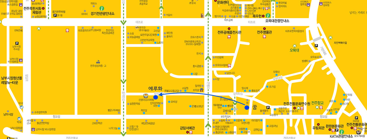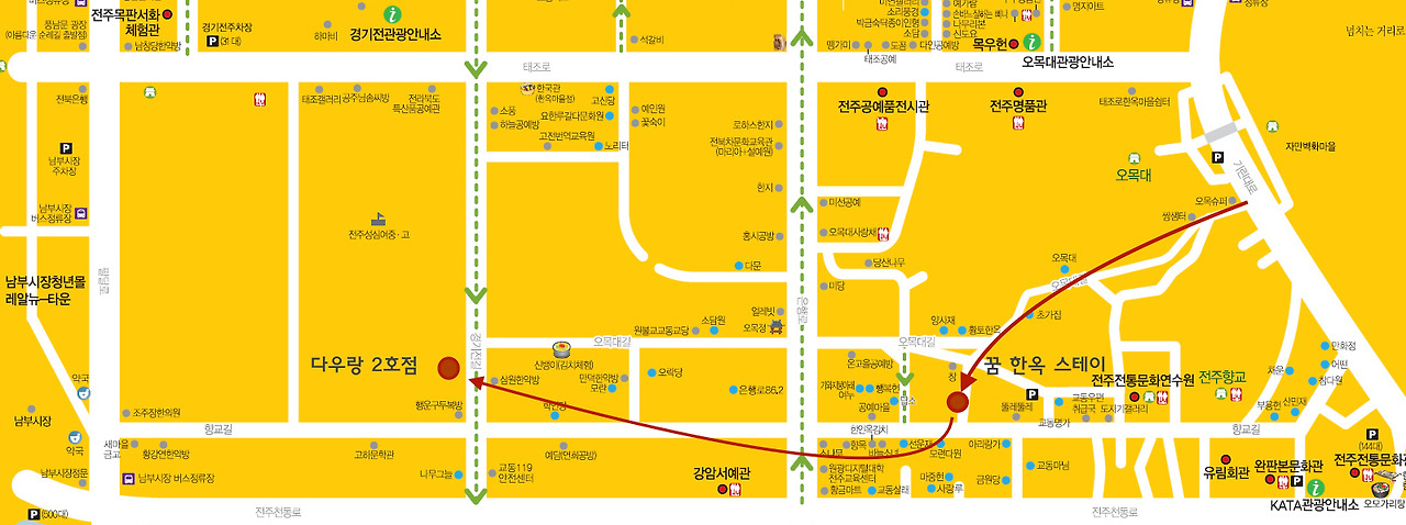 *도보로도 전주 영화의 거리를 갈 수 있지만 거리가 좀 멀기 때문에 배를 꺼트릴 겸 걷는 것을 추천