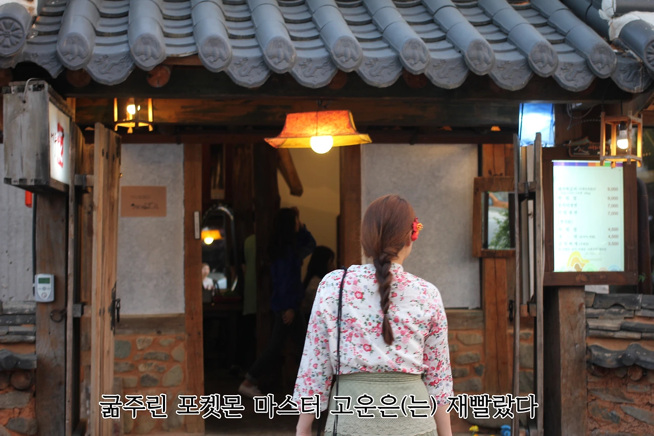 숙소가 한옥마을 내부이다 보니 잠시 쉬고 다시 금방 나갈 수 있다는 점이 장점이다. 배고파도 멀리 갈 것 없이 옷만 챙겨 입고 갔다 오면 된다. 그래서일까 옆에서 김기사가 지금 저녁 안 먹으면 야식을 못 먹는다고 짹짹거렸다. 끙얼끙얼 옷을 다시 챙겨 입고 저녁을 먹으러 나섰다.