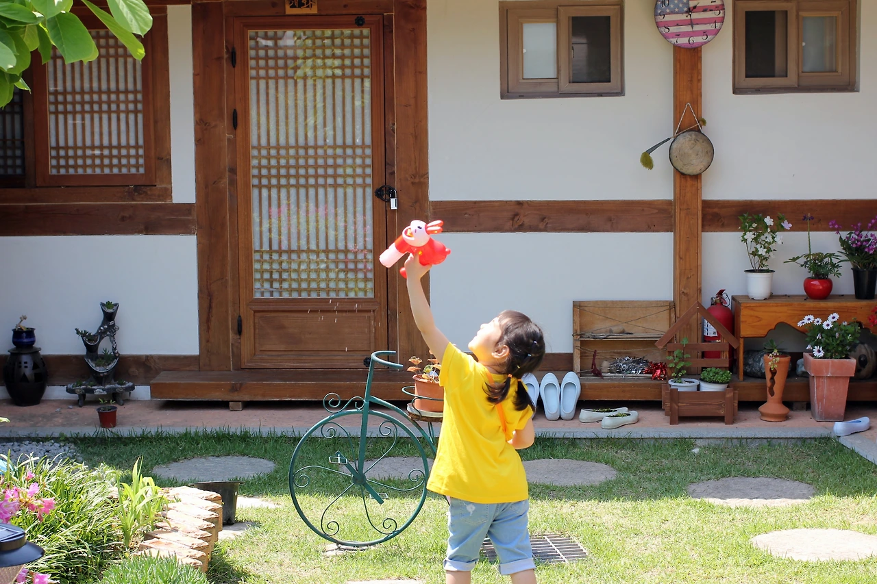 마당에서 미리 체크인한 아이가 놀고 있었다. 예쁜 마당을 돌아보며 호스트분들께 잘 놀다 간다고 인사드리고 나왔다.