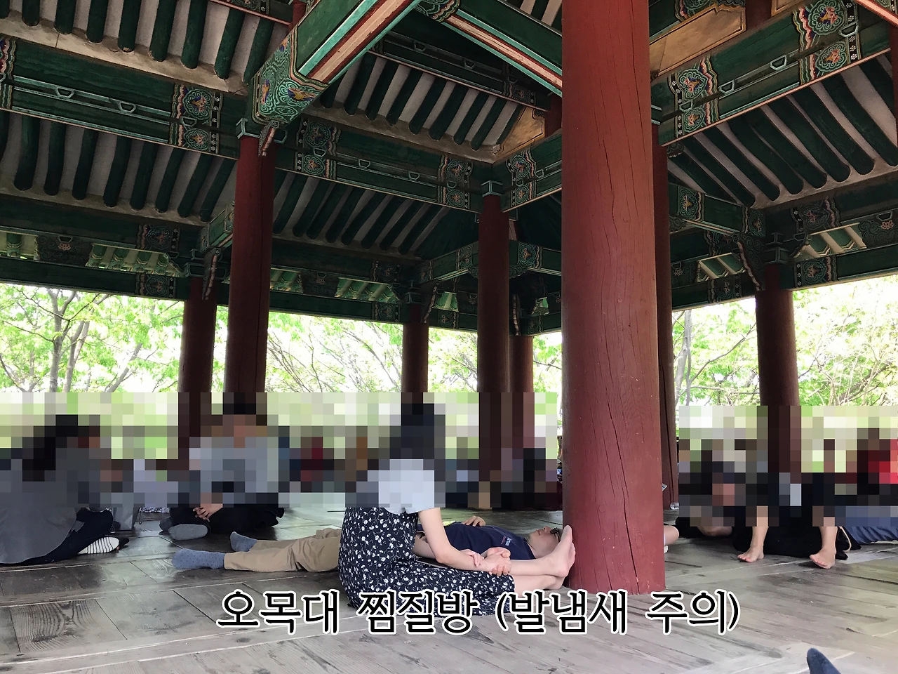 오목대 정상에 도착하면 그 위에 커다란 정자(?!)가 있는데, 도착했더니 많은 분들이 더위를 피하고 계셨고 그곳에서는 간간히 발 냄새가...