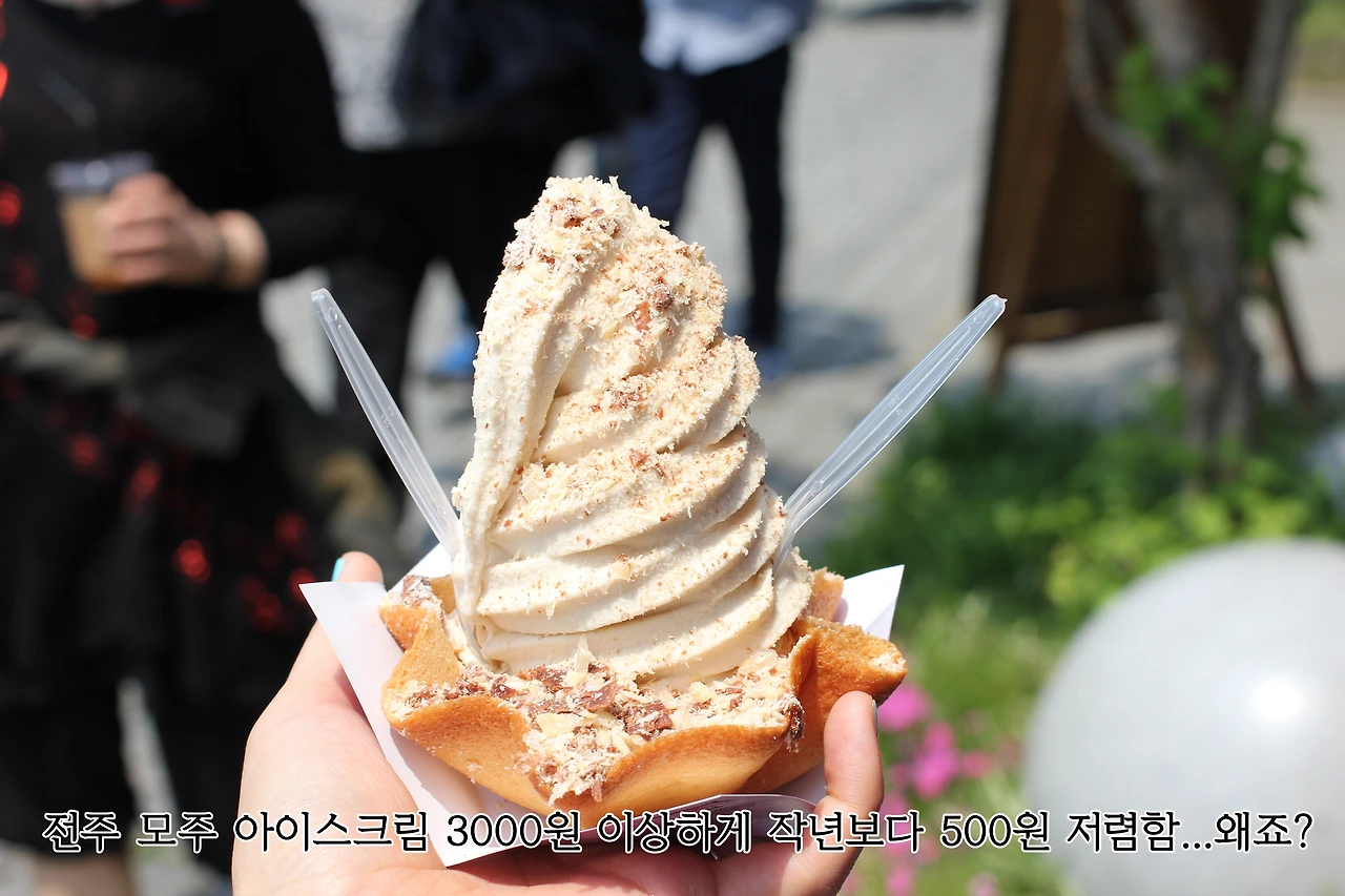 전동기 반납하고 먹은 작년의 전주 여행의 히트 아이템 모주 아이스크림 3000원, 계피향 나는 바닐라 아이스크림 위에 뿌려진 땅콩엿 가루가 백미.