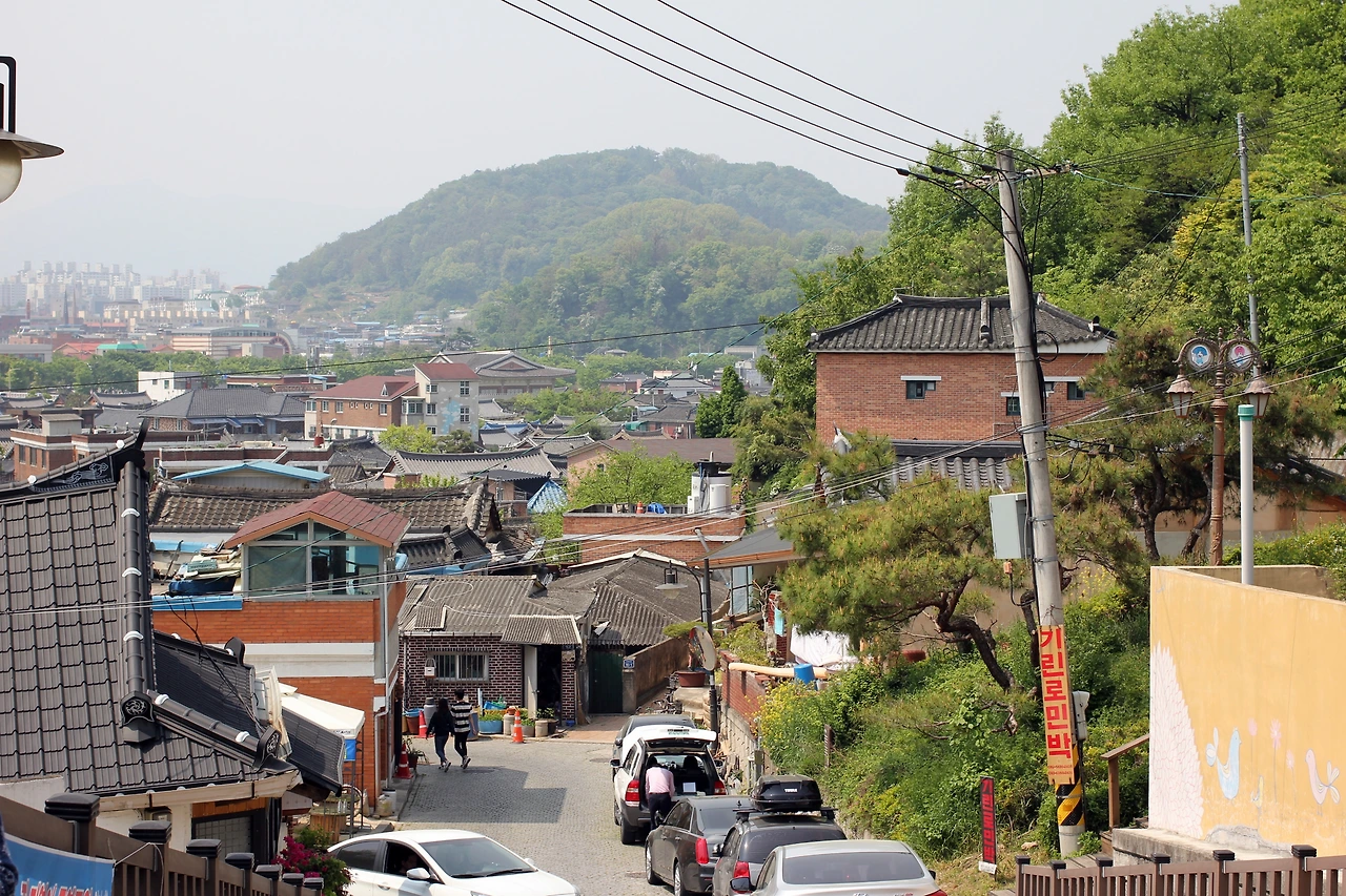 오목대를 올라오고 내려오는 길은 여러 방향이 있는데, 우리는 올라온 방향과 반대인 숙소 방향으로 내려가서 선크림을 챙기고 긴팔 옷을 맡겨두기로 했다.